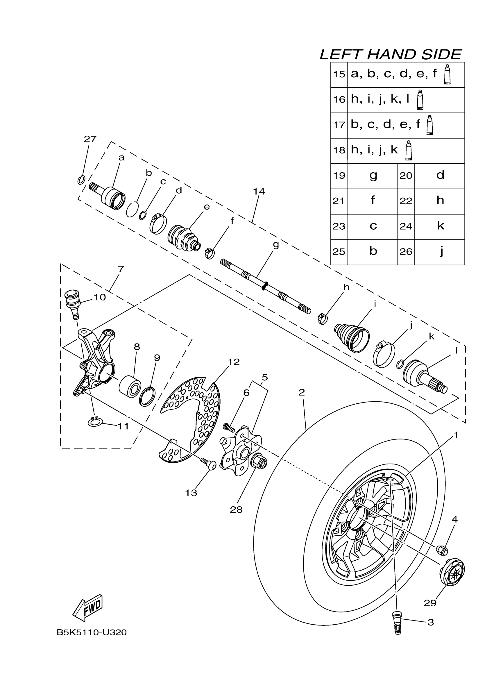 Yamaha YFM70KPSPB (KODIAK 700 EPS SE) BGFU 2023 FRONT WHEEL Diagram