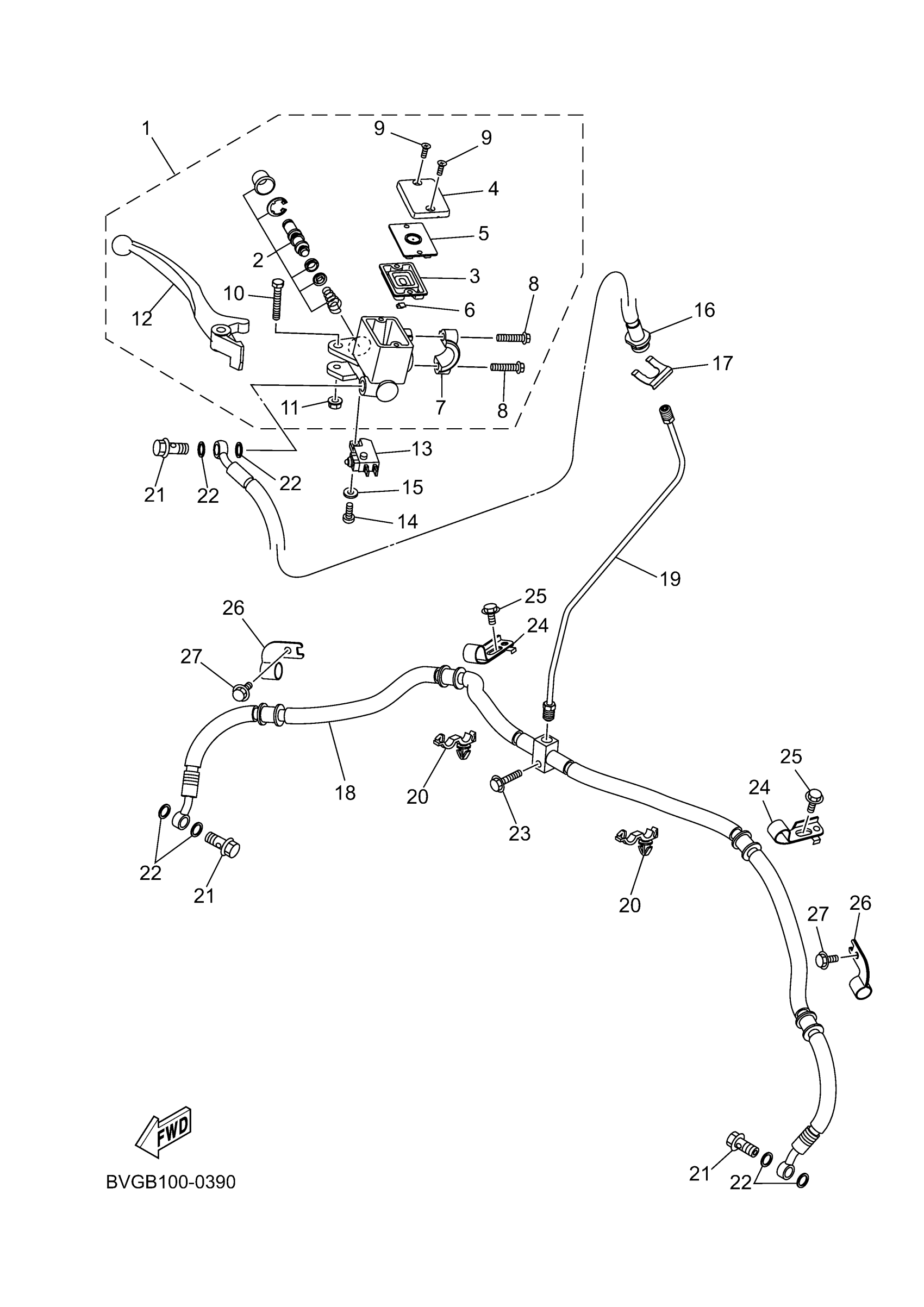 Yamaha YFM70KPSST (KODIAK 700 EPS SE) BVGF 2025 FRONT MASTER CYLINDER Diagram