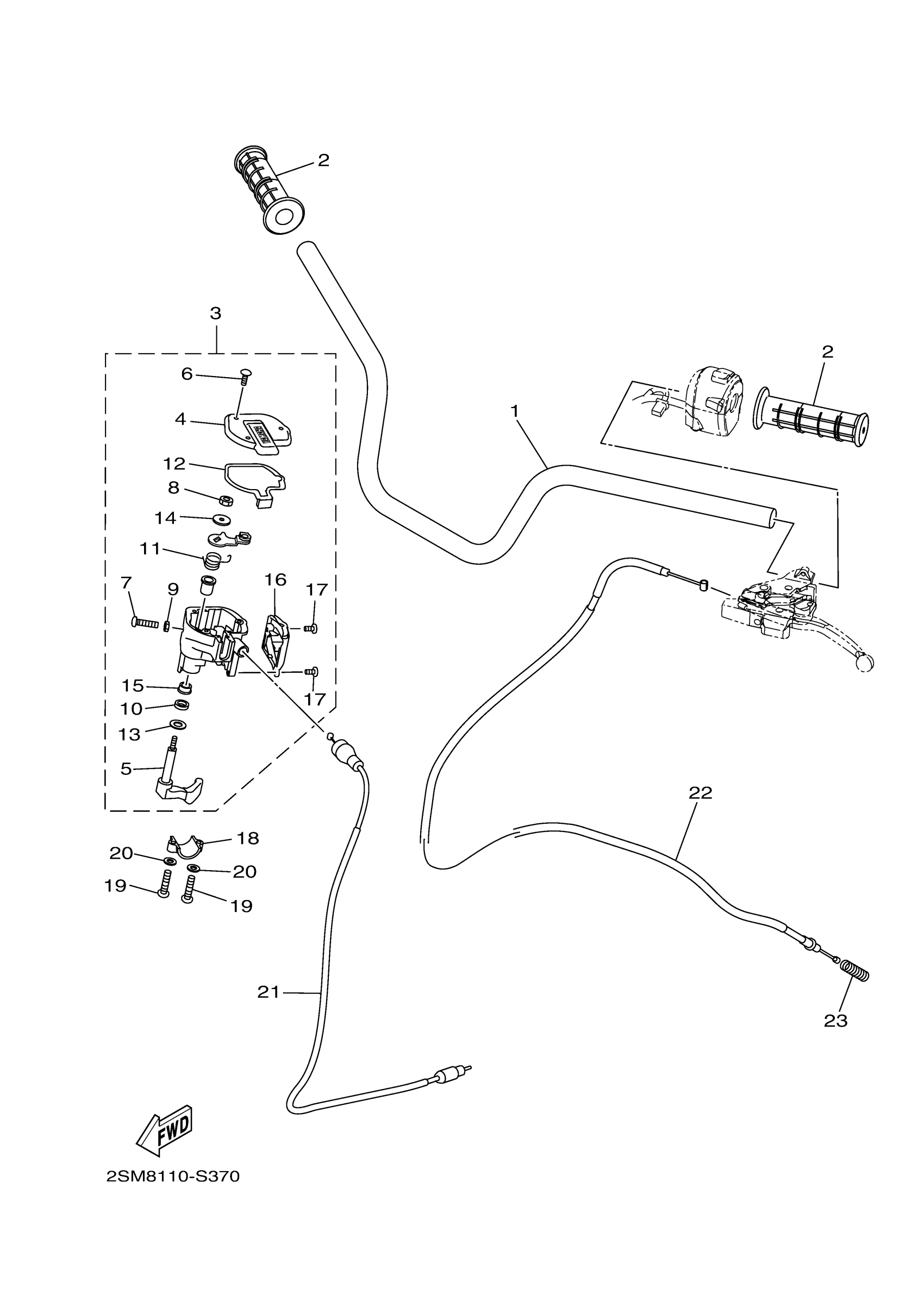 Yamaha YFM70KPXHR (KODIAK 700 EPS 4WD) 2SM81 2017 STEERING HANDLE CABLE Diagram