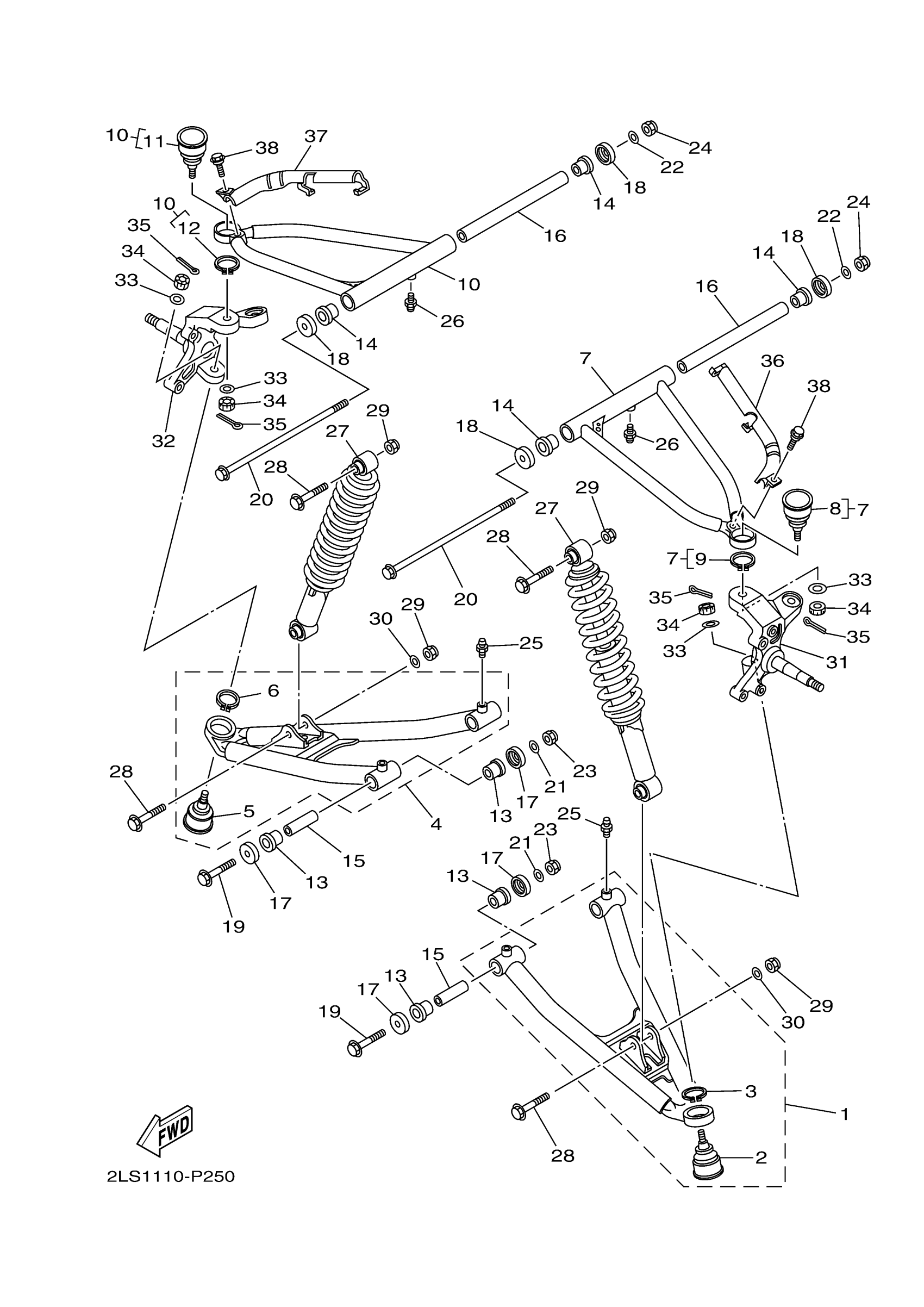 Yamaha YFM70RSBGL (RAPTOR 700) 2LS5 2016 FRONT SUSPENSION WHEEL Diagram