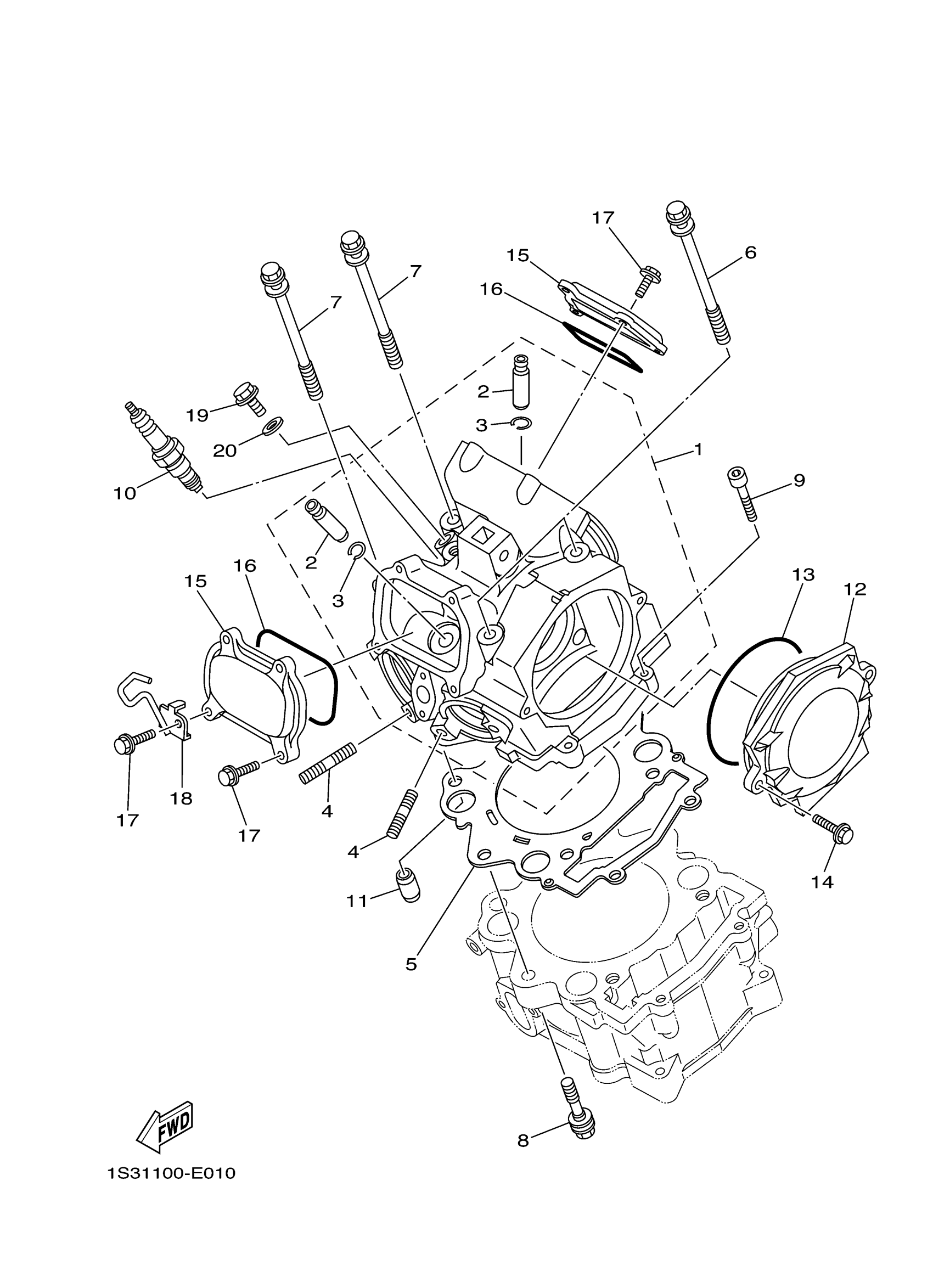 Yamaha YFM70RXL (RAPTOR 700) 1S3HO 2008 CYLINDER HEAD Diagram