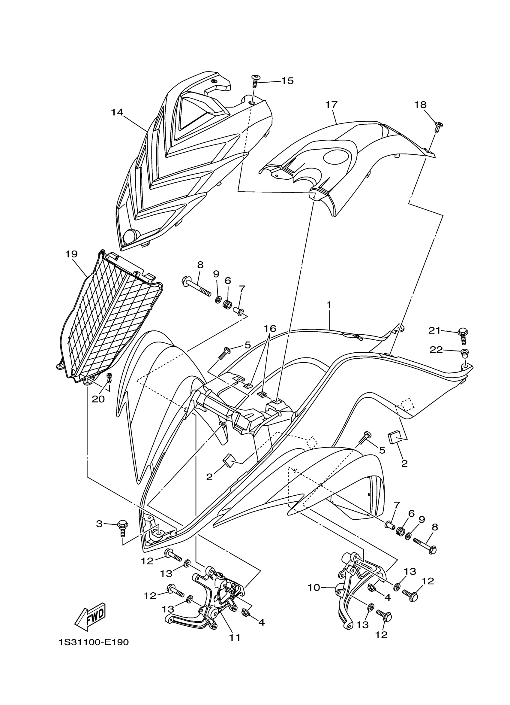 Yamaha YFM70RYRW (RAPTOR 700 GYTR EDITION) 1S3D 2007 FRONT FENDER Diagram
