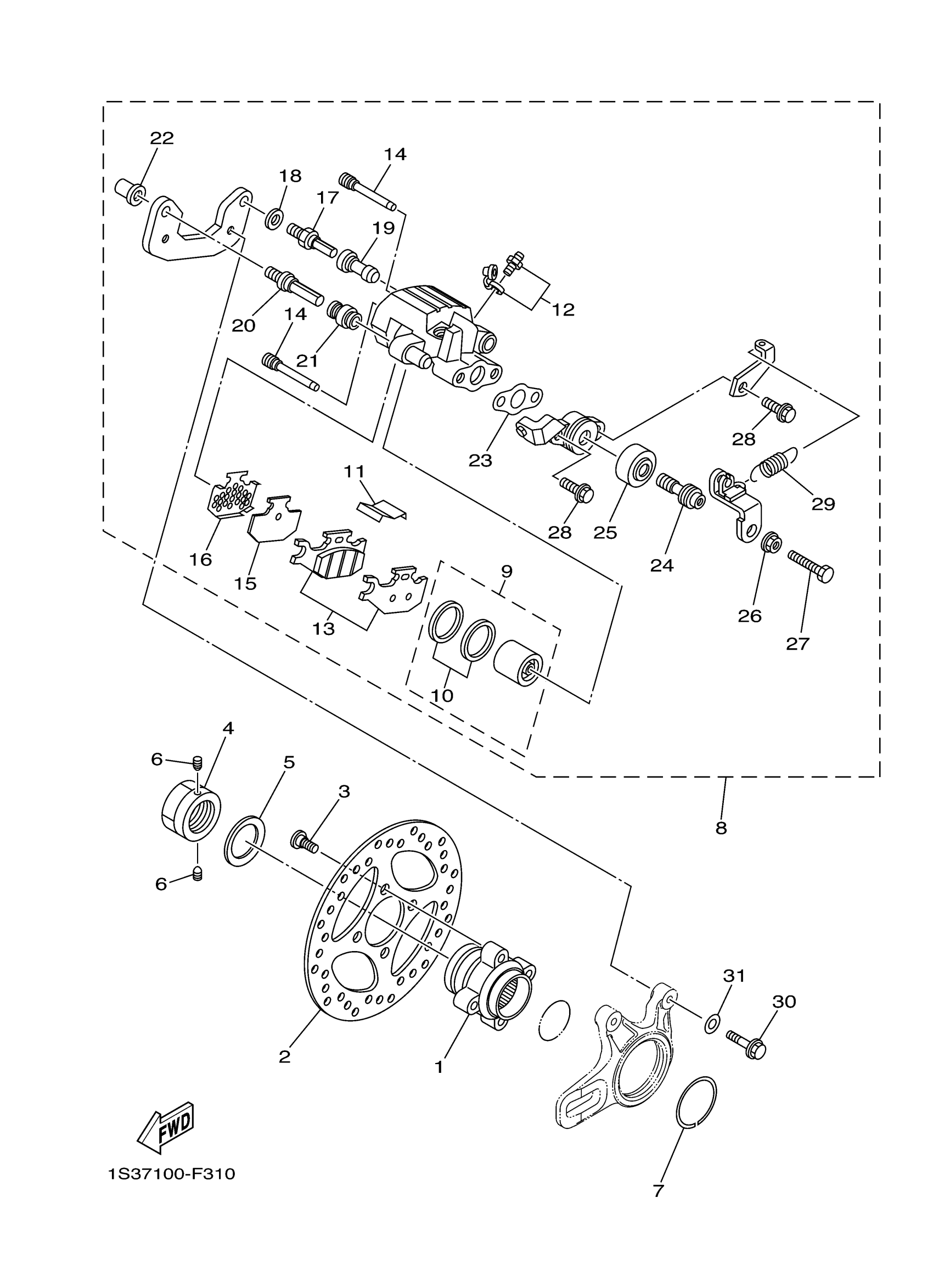 Yamaha YFM70RYW (RAPTOR 700 R) 1S3L0 2009 REAR BRAKE CALIPER Diagram