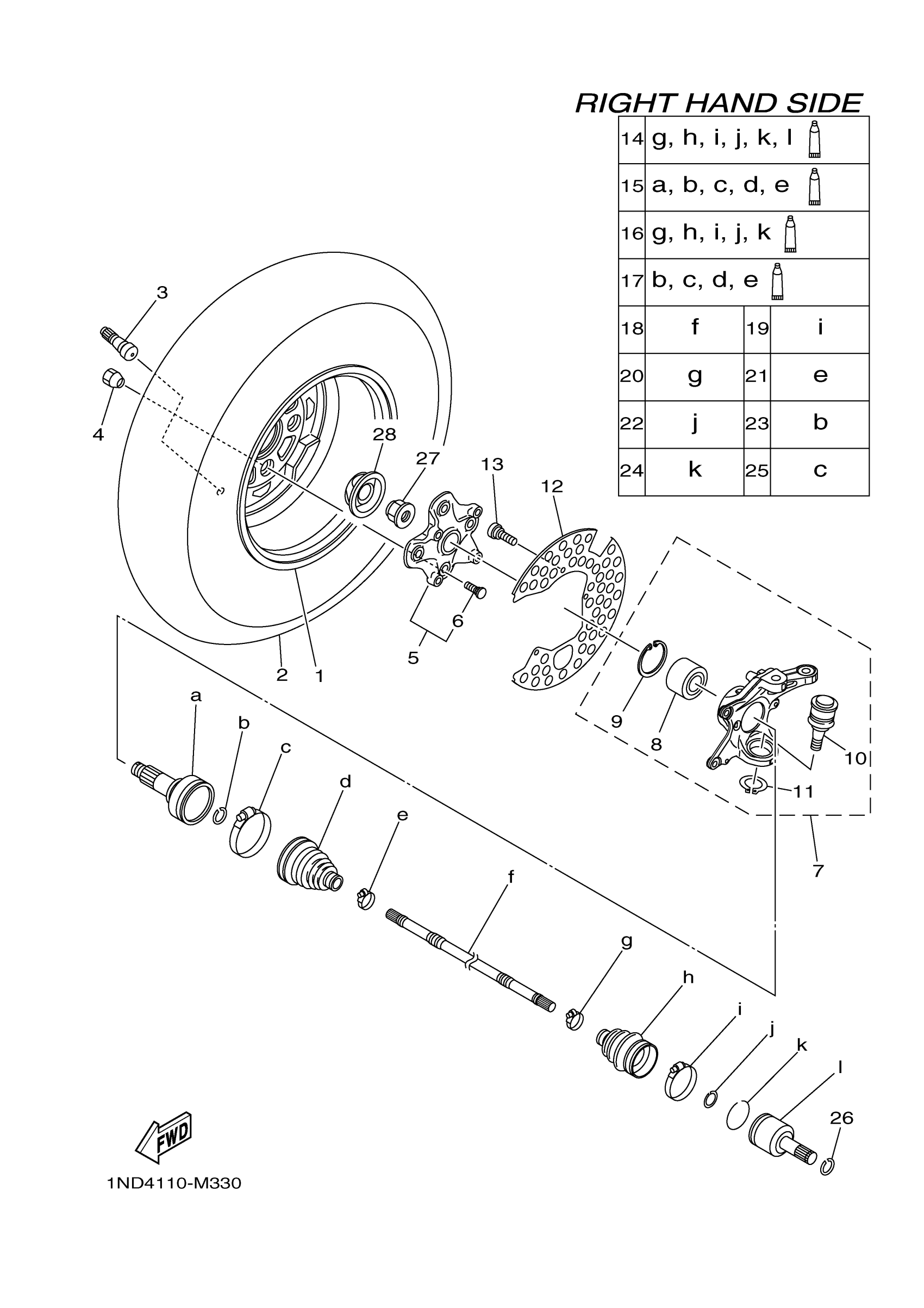 Yamaha YFM7FGHD (GRIZZLY 700 4WD HUNTER) 1ND6 2013 FRONT WHEEL 2 Diagram