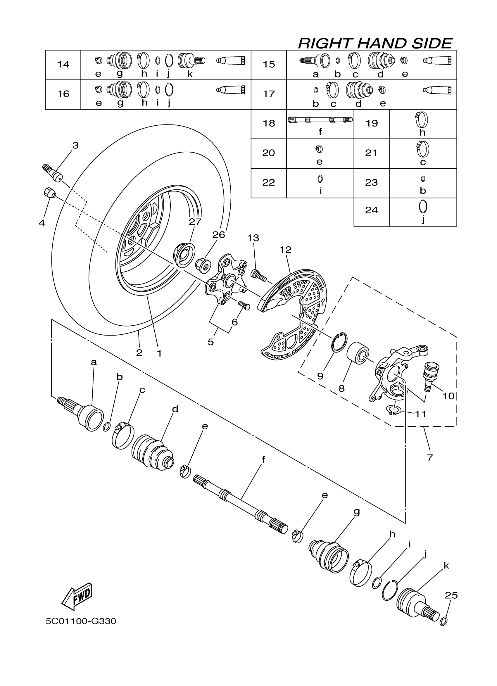 Yamaha YFM7FGHX (GRIZZLY FI 700 HUNTER) 5C05 2008 FRONT WHEEL 2 Diagram