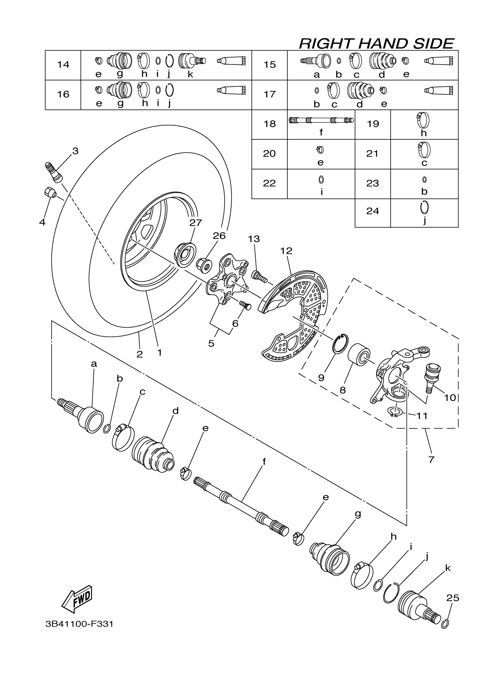 Yamaha YFM7FGPHX (GRIZZLY 700 EPS HUNTER) 3B4H 2008 FRONT WHEEL 2 Diagram