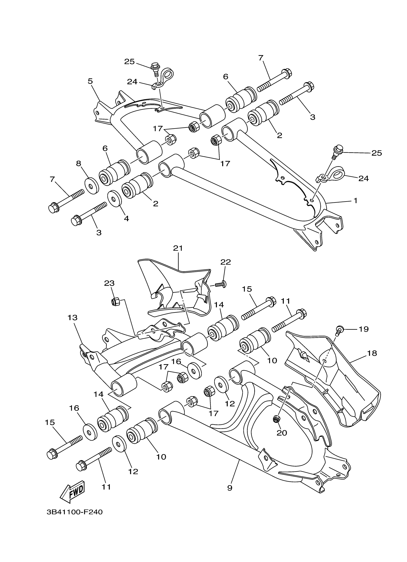 Yamaha YFM7FGPOHW (GRIZZLY 700 OUTDOORSMAN EDITION) 3B45 2007 REAR ARM Diagram