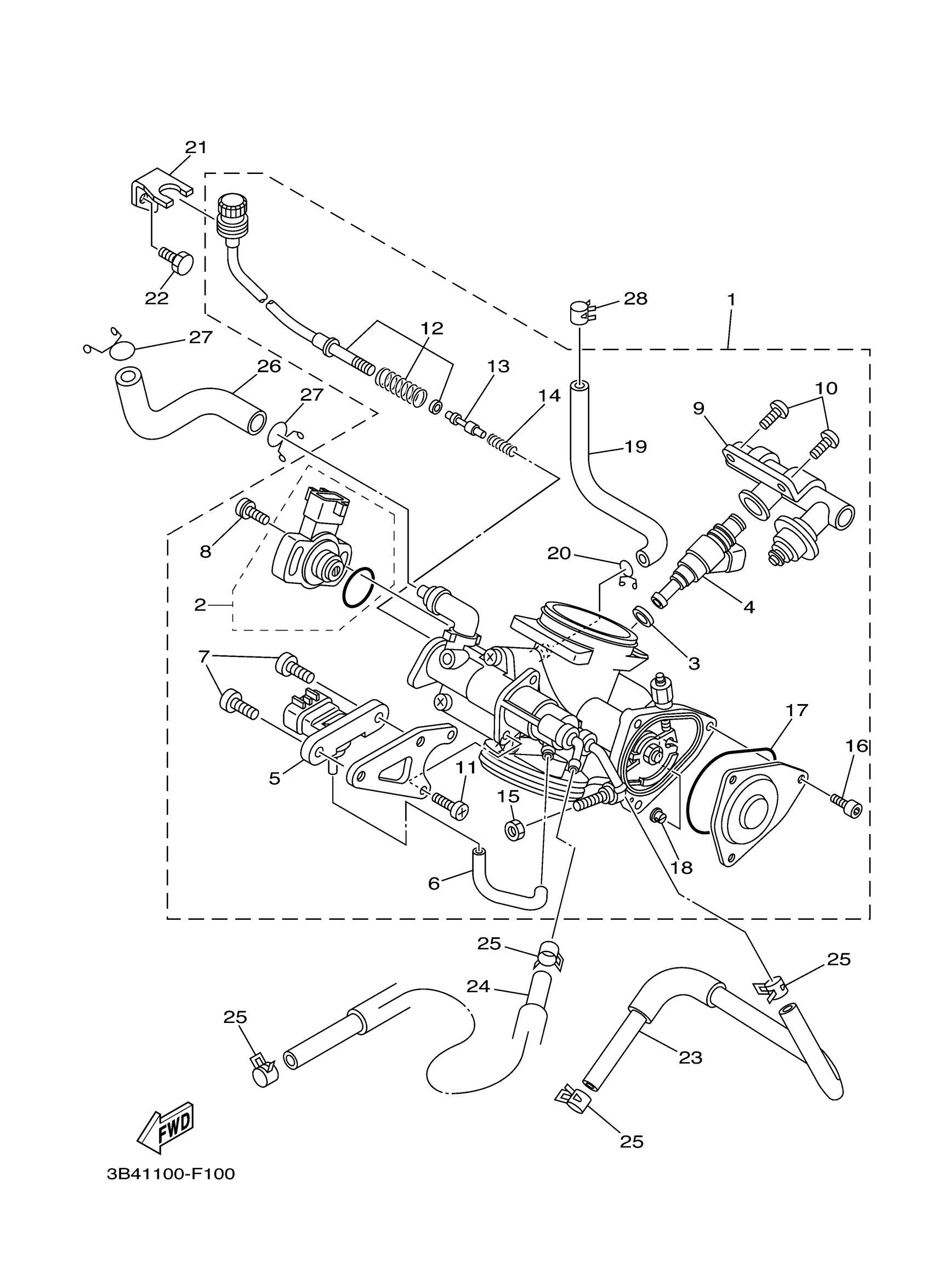 Yamaha YFM7FGPSEW (GRIZZLY 700 SPECIAL EDITION-SILVER) 3B4A 2007 THROTTLE BODY ASSY 1 Diagram