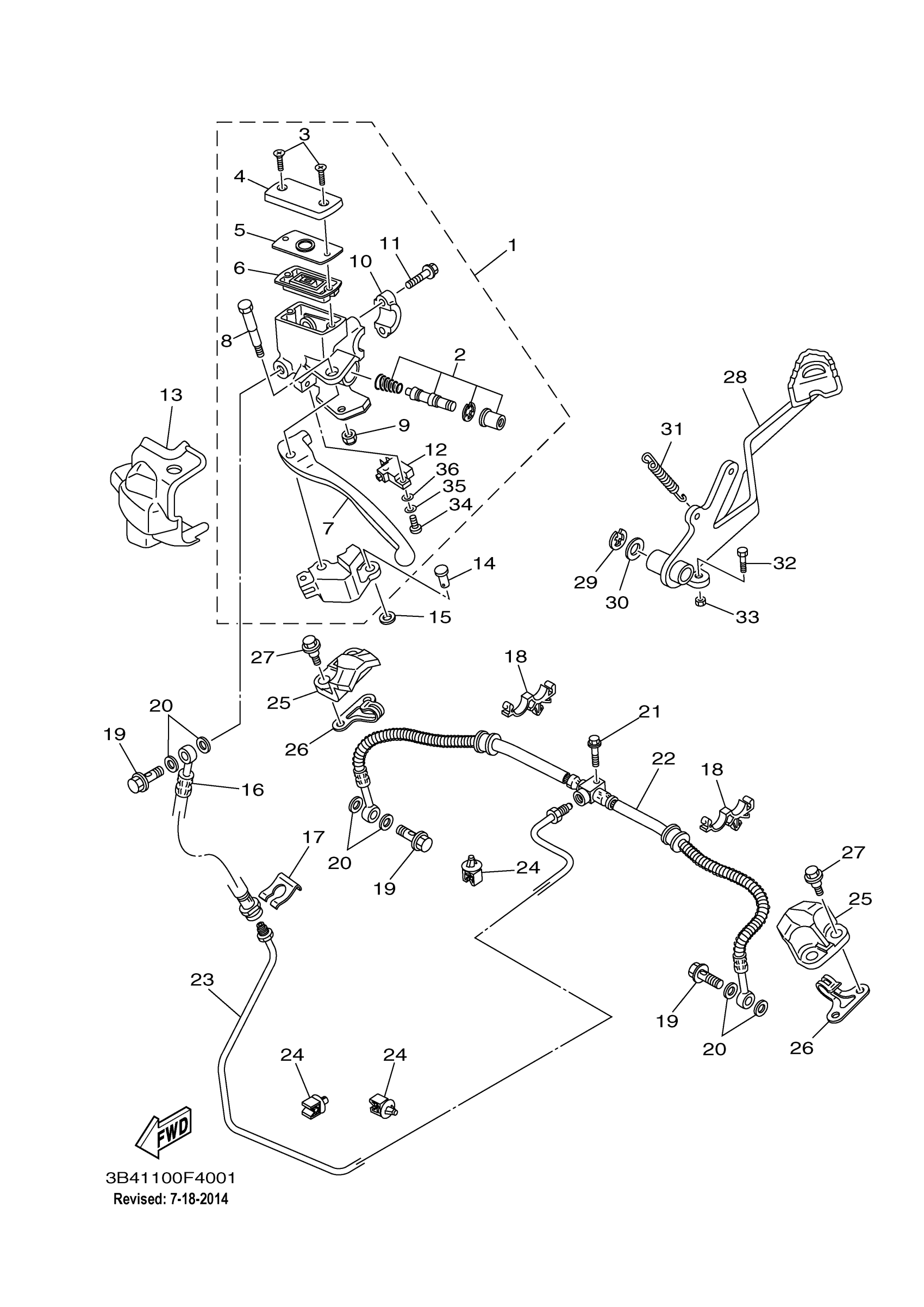 Yamaha YFM7FGPSEZ (700 FI EPS 4WD SPECIAL EDITION) 43PS 2010 REAR MASTER CYLINDER Diagram