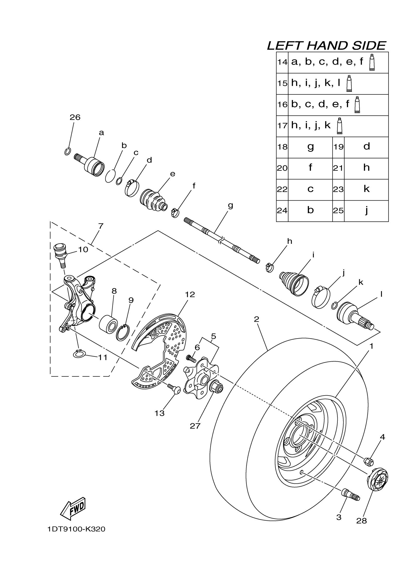 Yamaha YFM7FGPSPA (GRIZZLY 700 EPS 4WD SPECIAL) 1DTB 2011 FRONT WHEEL Diagram