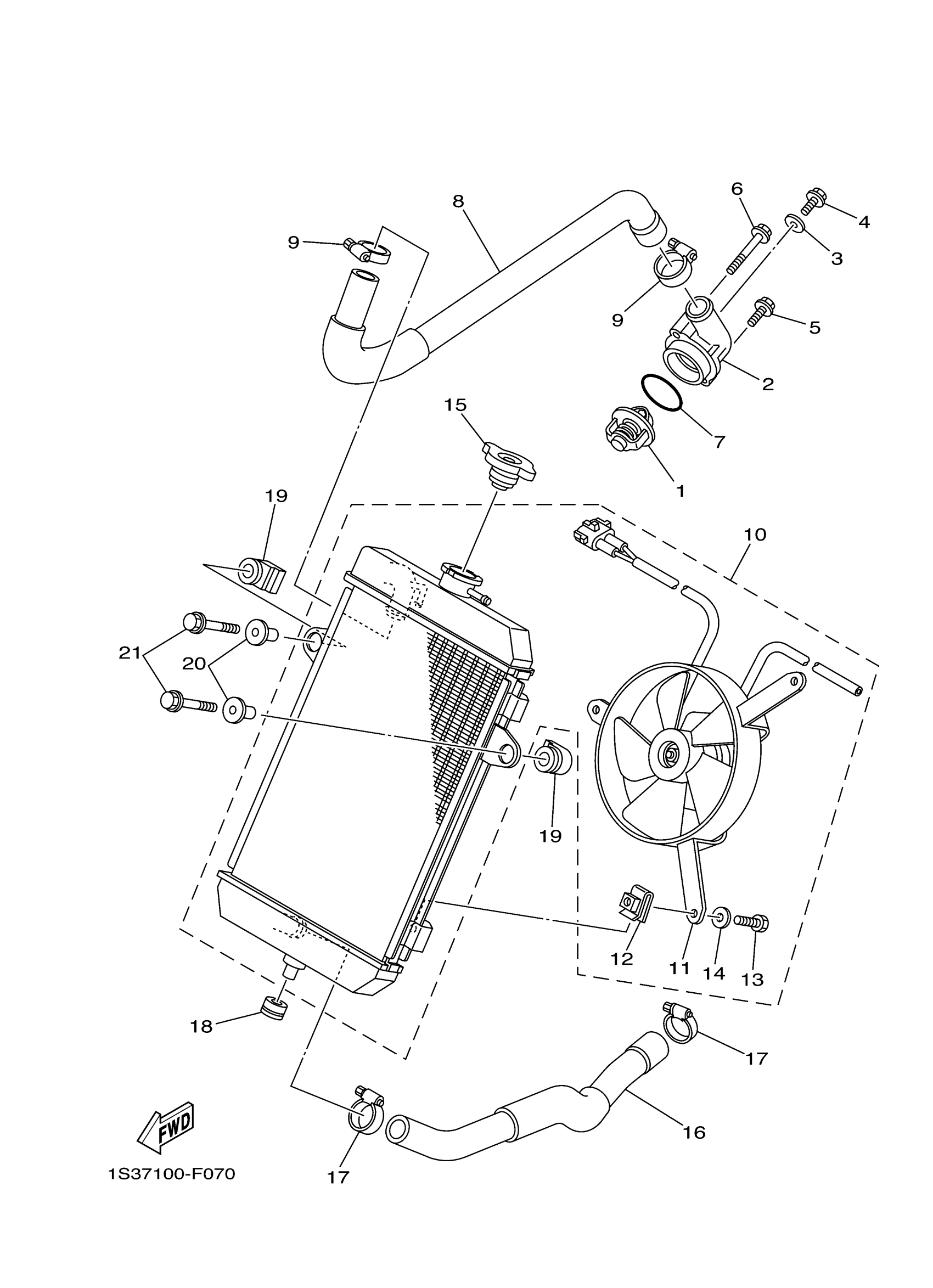 Yamaha YFM7RBW (RAPTOR 700R) 1ASD0 2012 RADIATOR HOSE Diagram