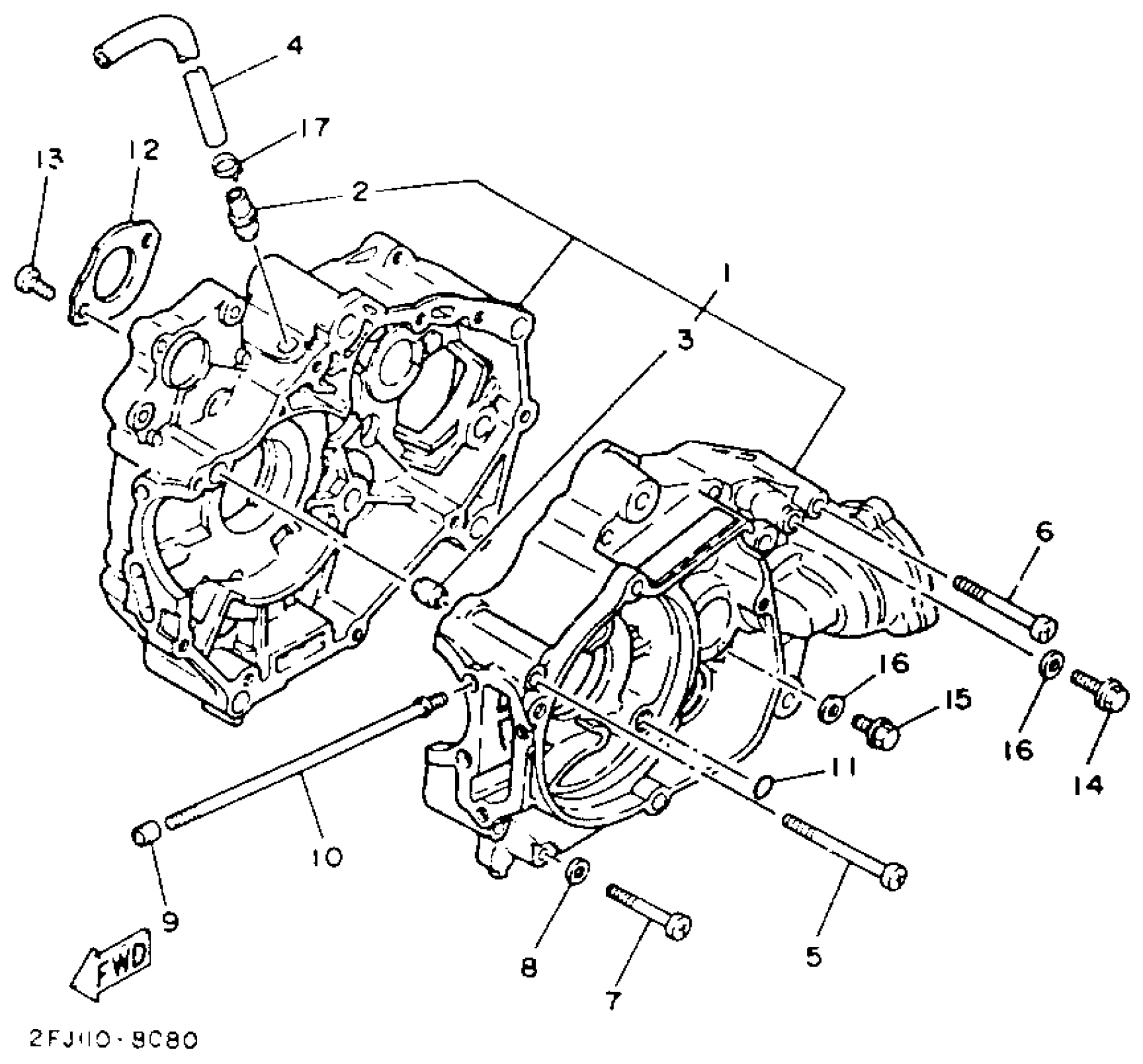 Yamaha YFM80E (BADGER) 1993 CRANKCASE Diagram