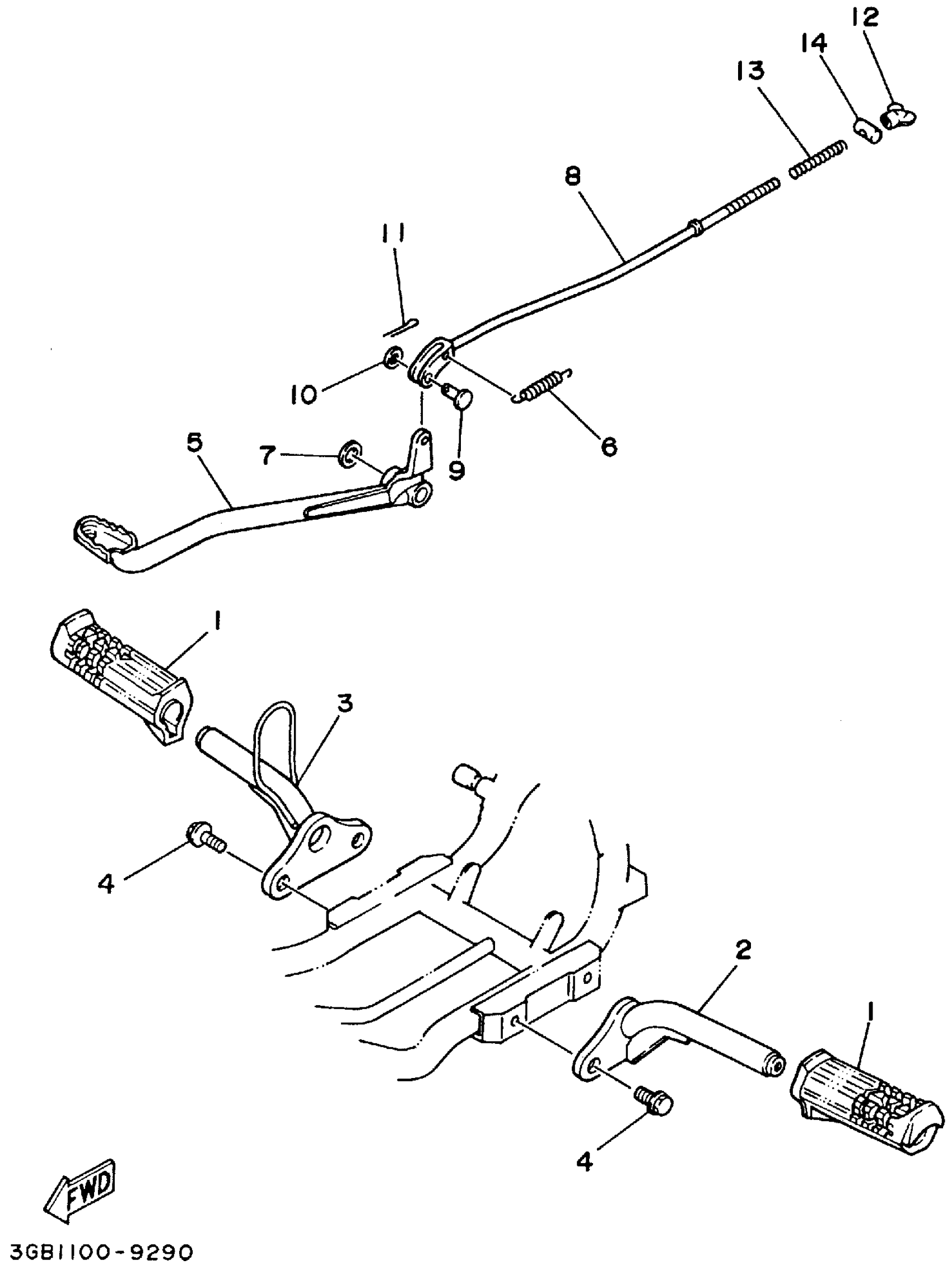 Yamaha YFM80F (BADGER) 1994 STAND - FOOTREST Diagram