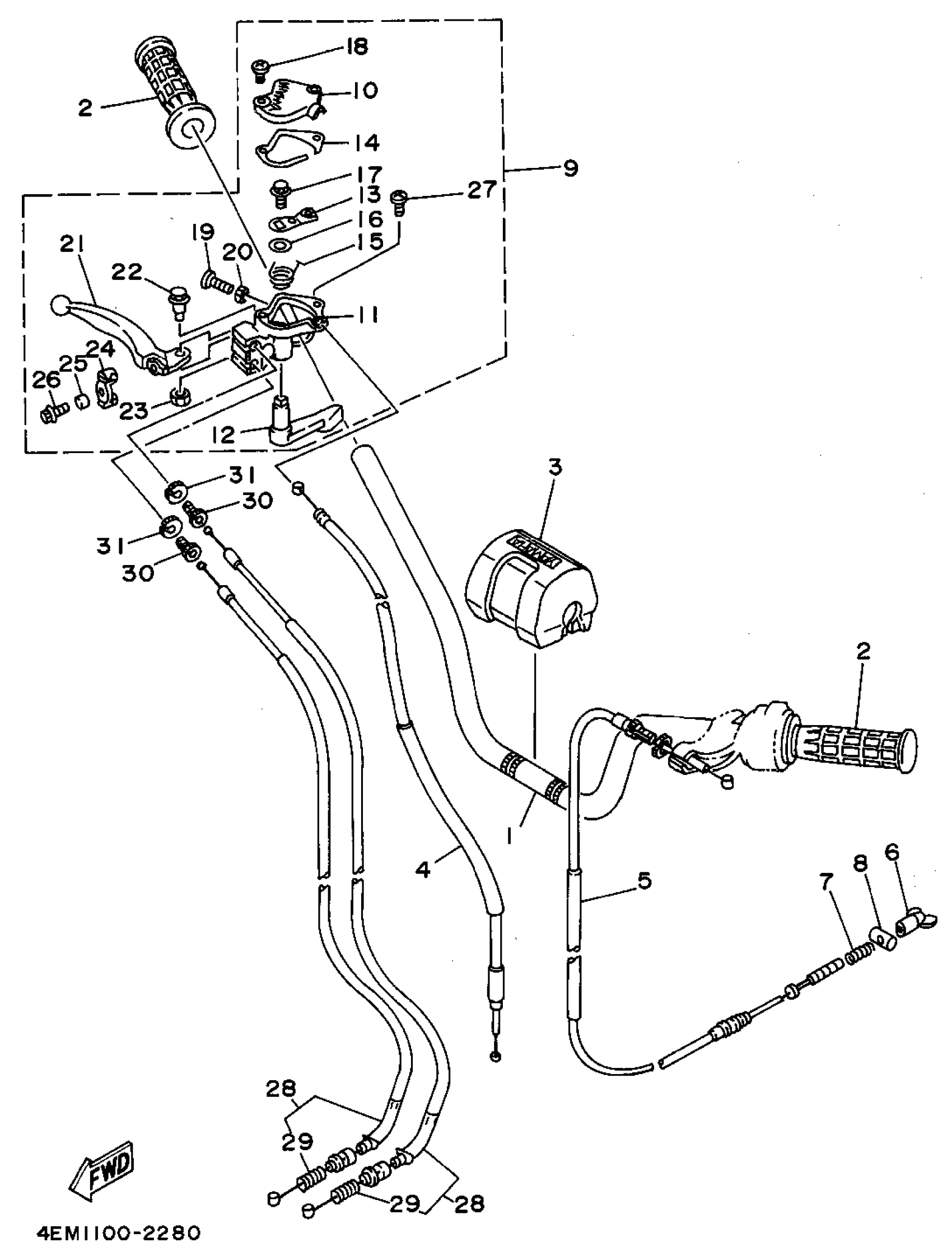 Yamaha YFM80G (BADGER) 1995 STEERING HANDLE - CABLE Diagram
