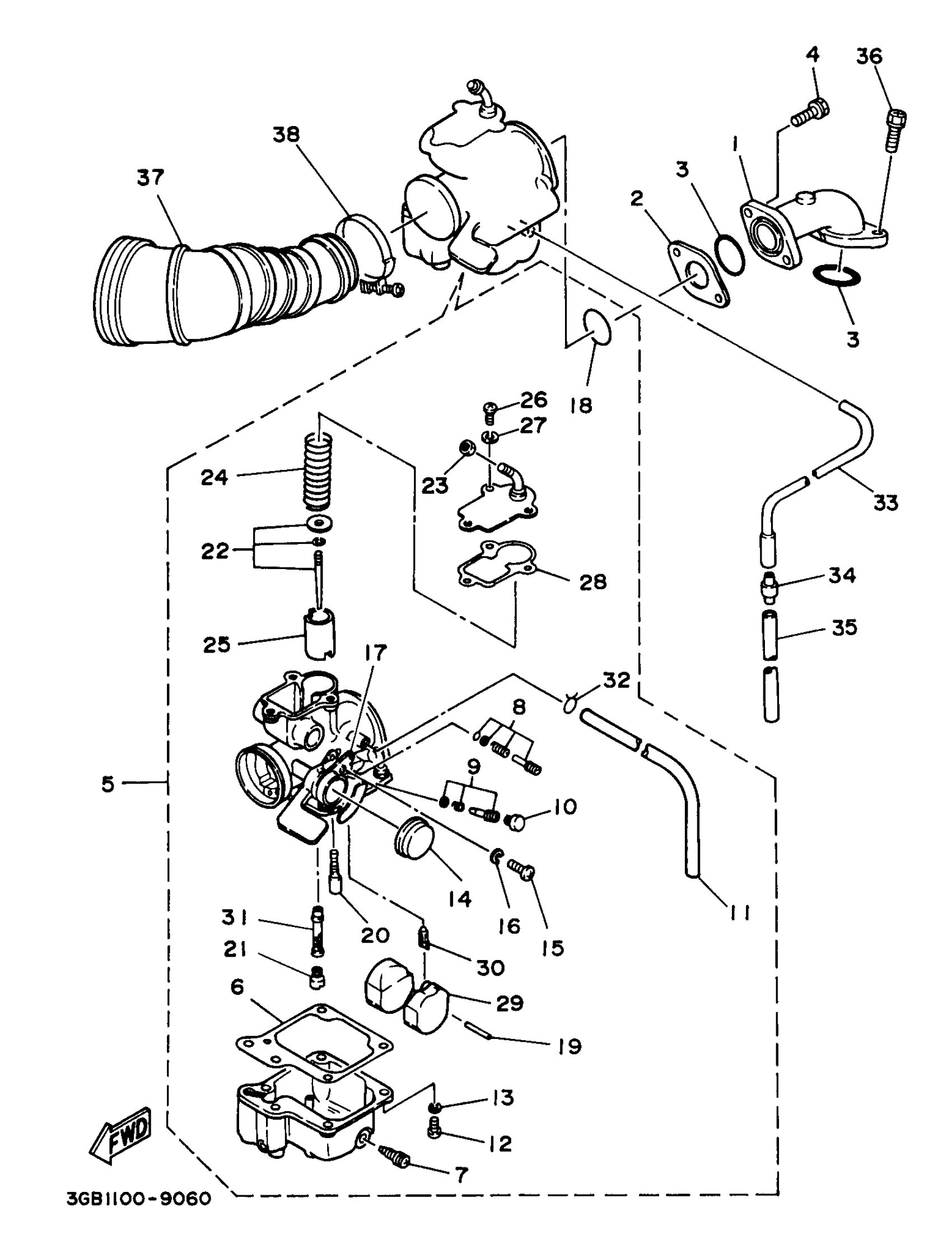 Yamaha YFM80J (BADGER) 4EMF 1997 INTAKE Diagram
