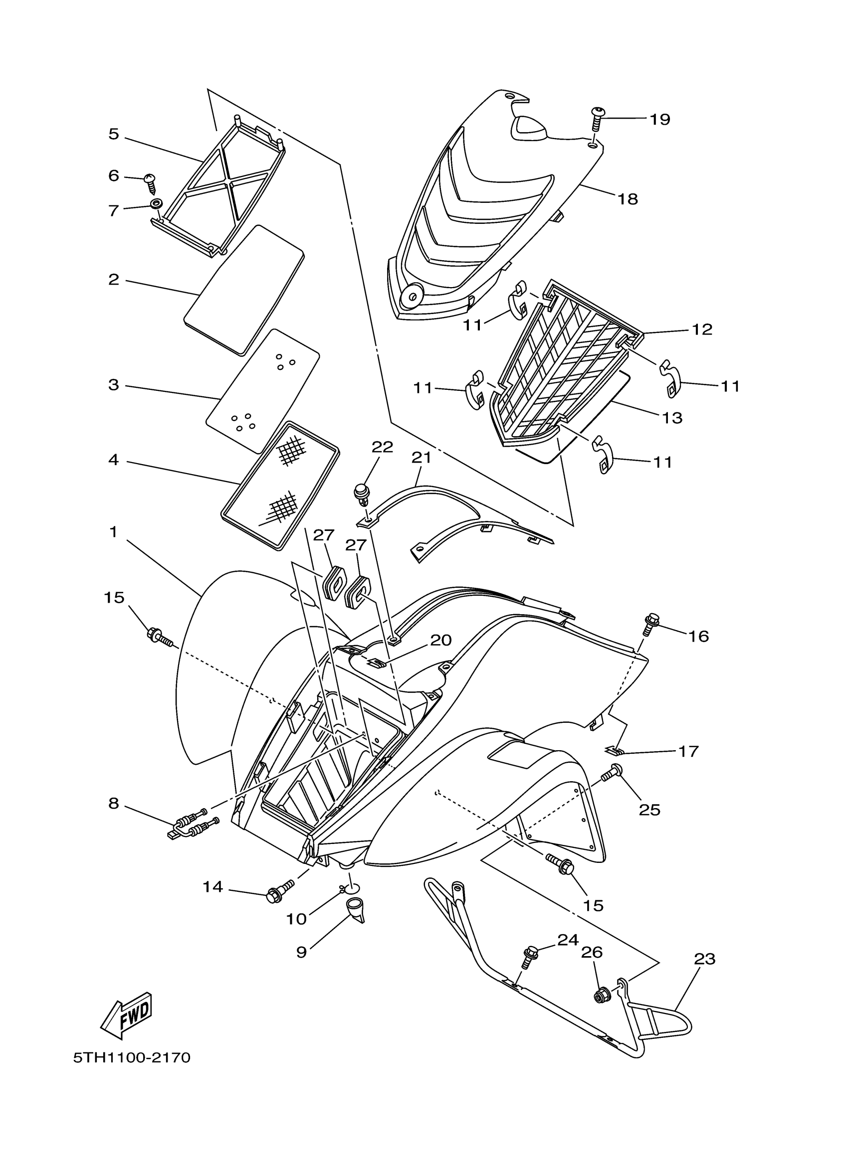 Yamaha YFM80WS (RAPTOR 80) 5TH8 2004 FRONT FENDER Diagram