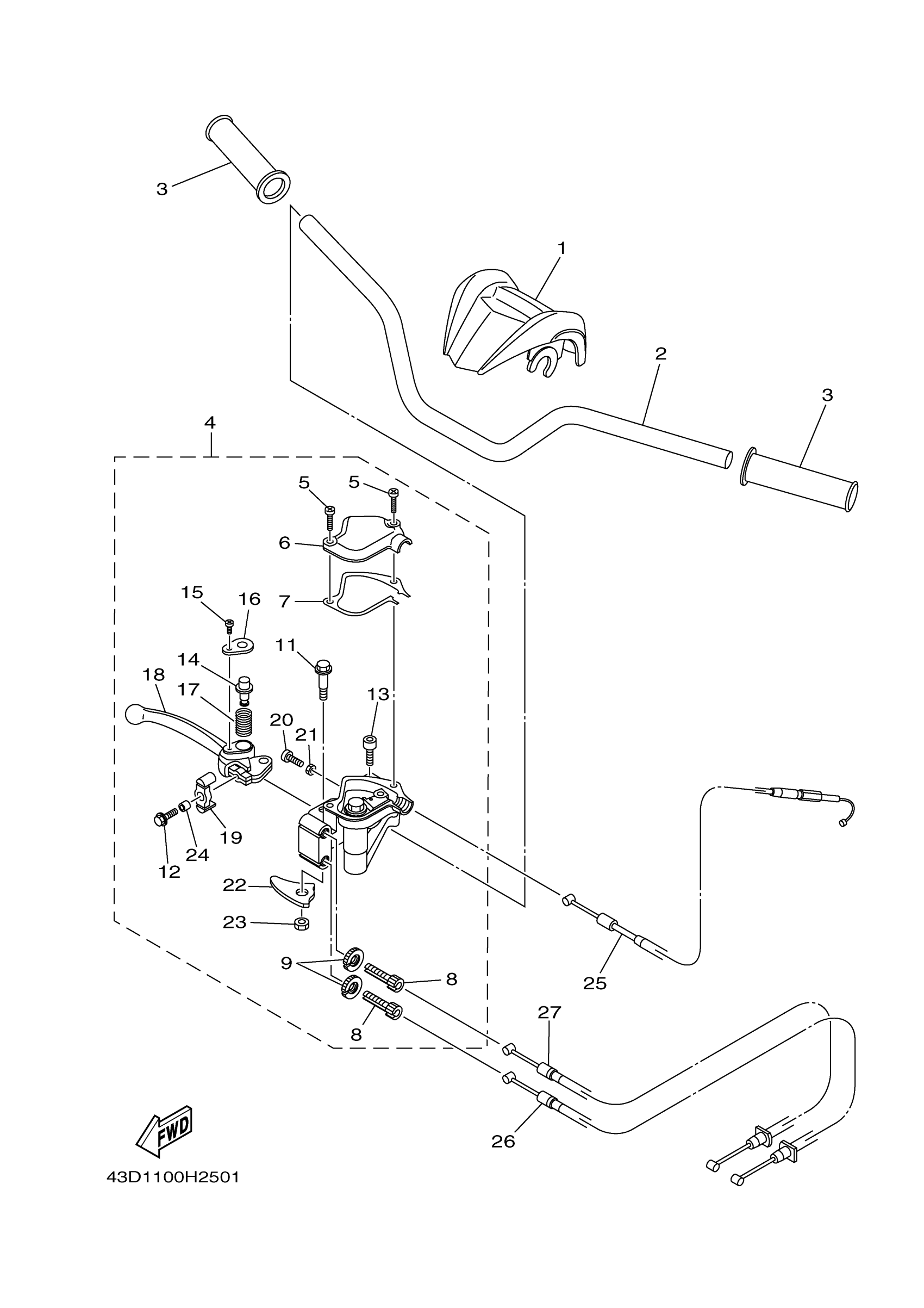 Yamaha YFM90RYL (RAPTOR 90) 43D10 2009 STEERING HANDLE CABLE Diagram