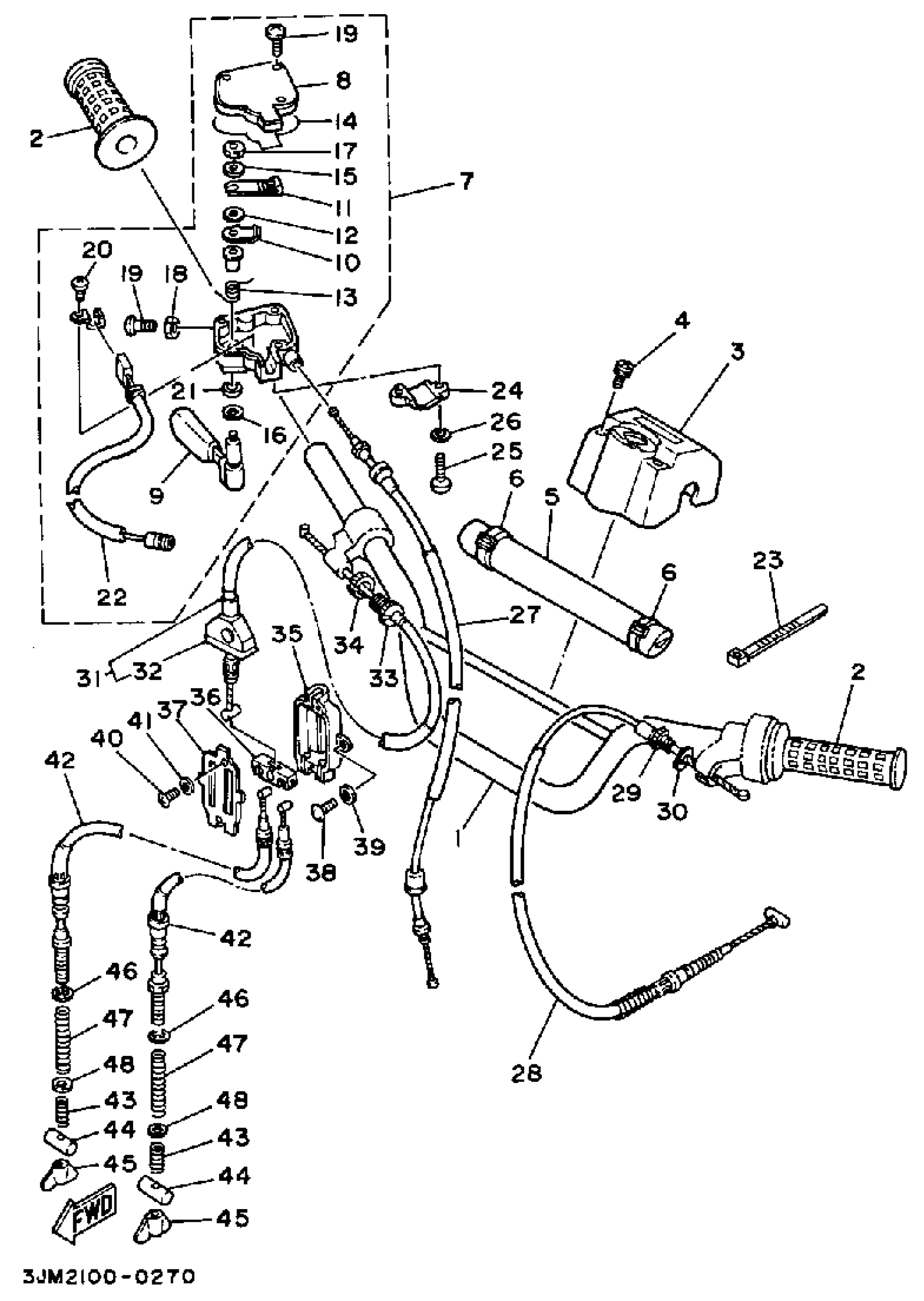 Yamaha YFS200B (BLASTER) 1991 HANDLEBAR CABLE Diagram