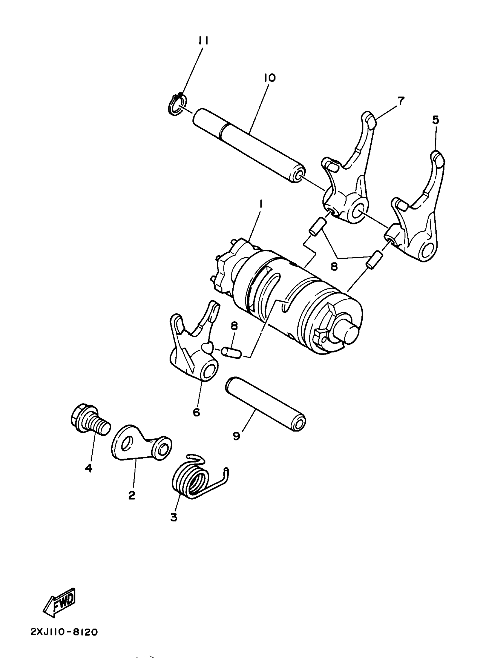 Yamaha YFS200J (BLASTER) 3JMN 1997 SHIFT CAM SHIFT FORK Diagram