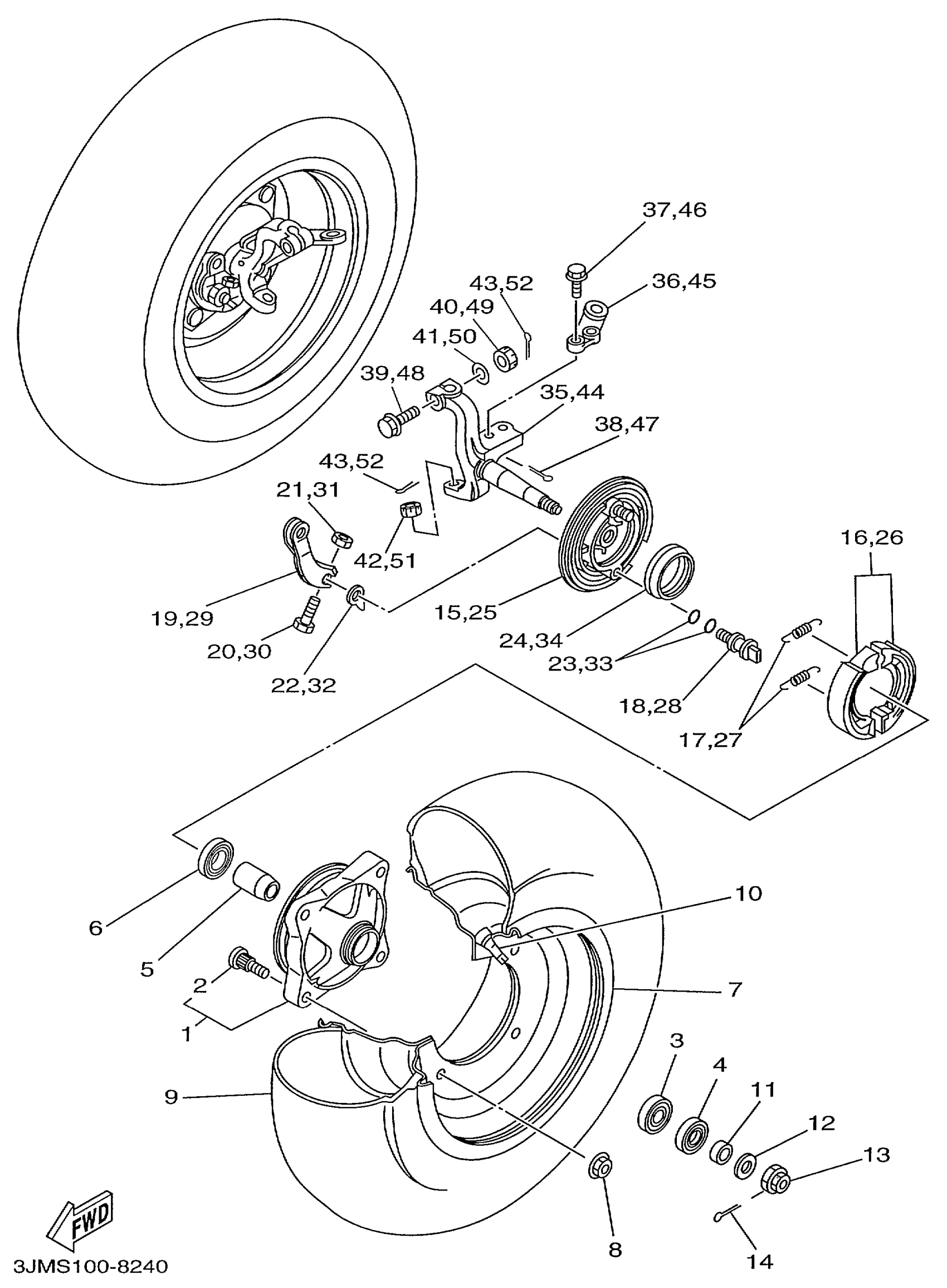 Yamaha YFS200L (BLASTER) 3JMV 1999 FRONT WHEEL Diagram