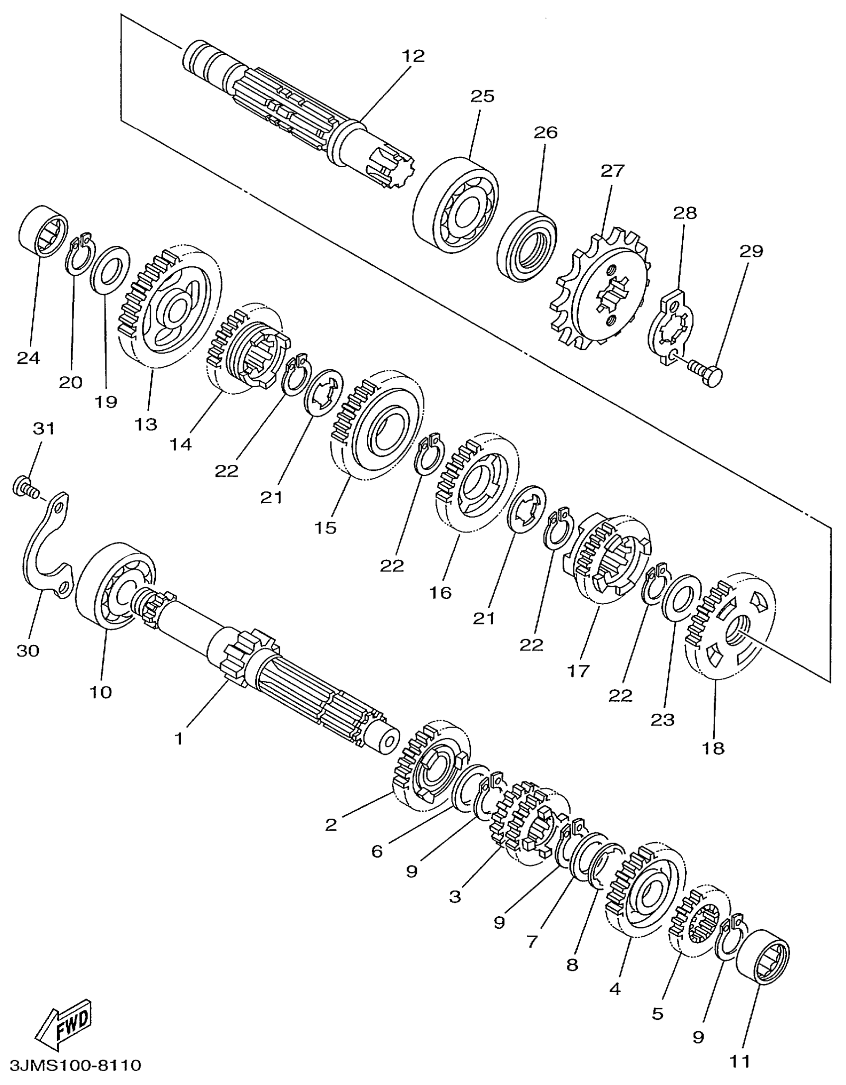 Yamaha YFS200L (BLASTER) 3JMV 1999 TRANSMISSION Diagram