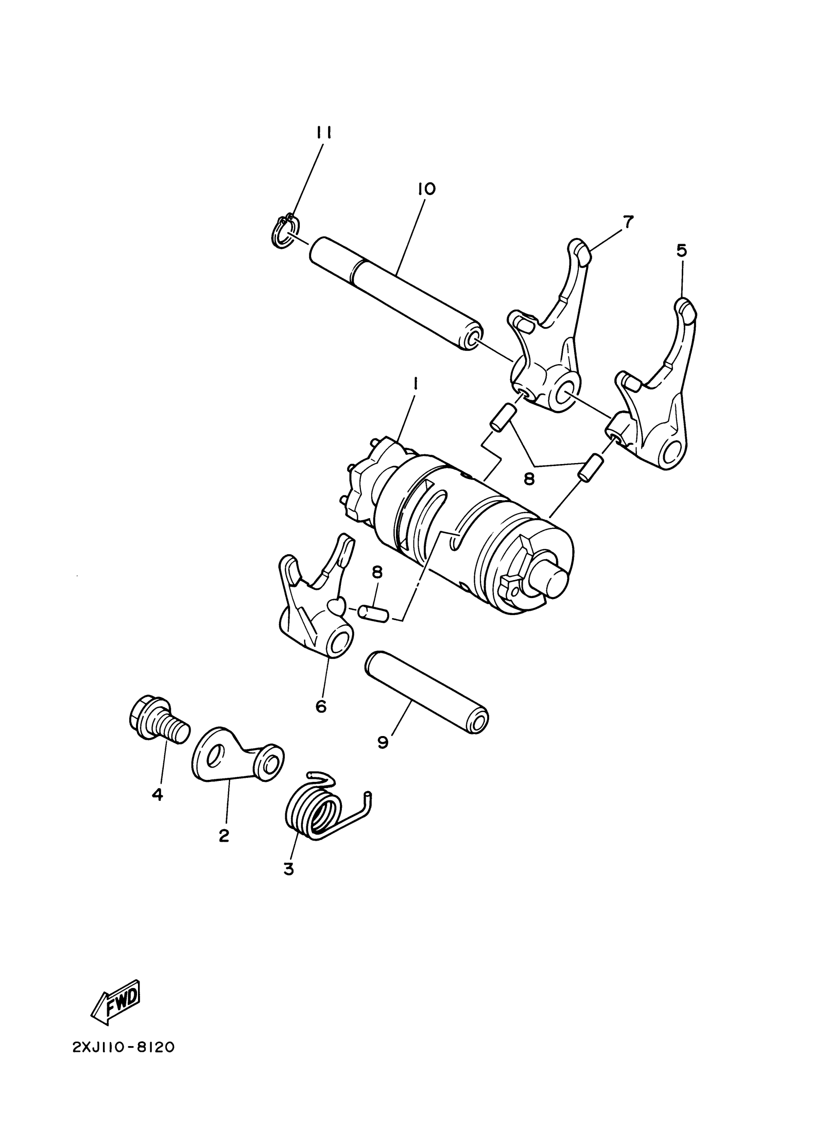 Yamaha YFS200M (BLASTER) 5KJ1 2000 SHIFT CAM FORK Diagram