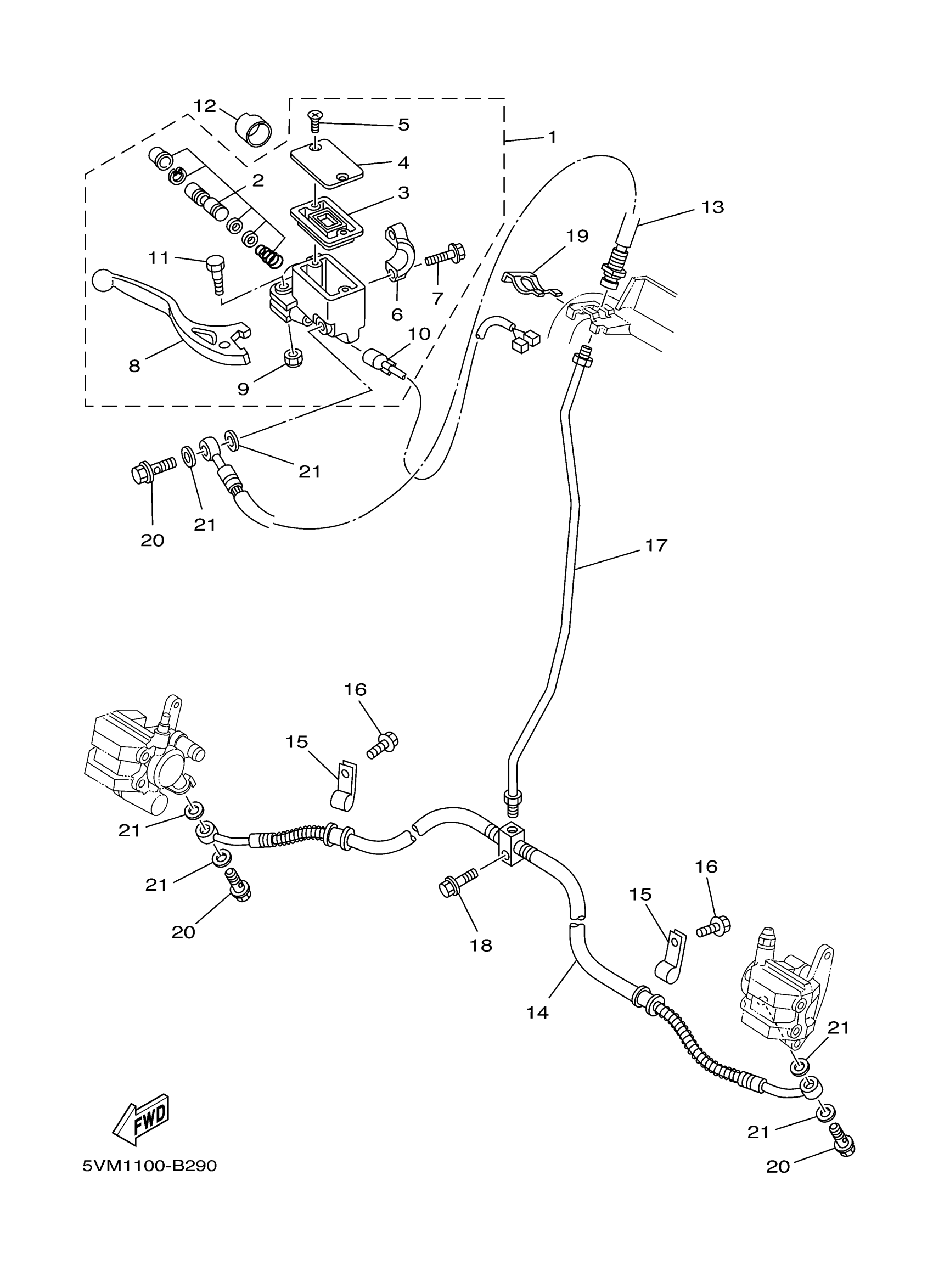 Yamaha YFS200S (BLASTER) 5VM3 2004 FRONT MASTER CYLINDER Diagram