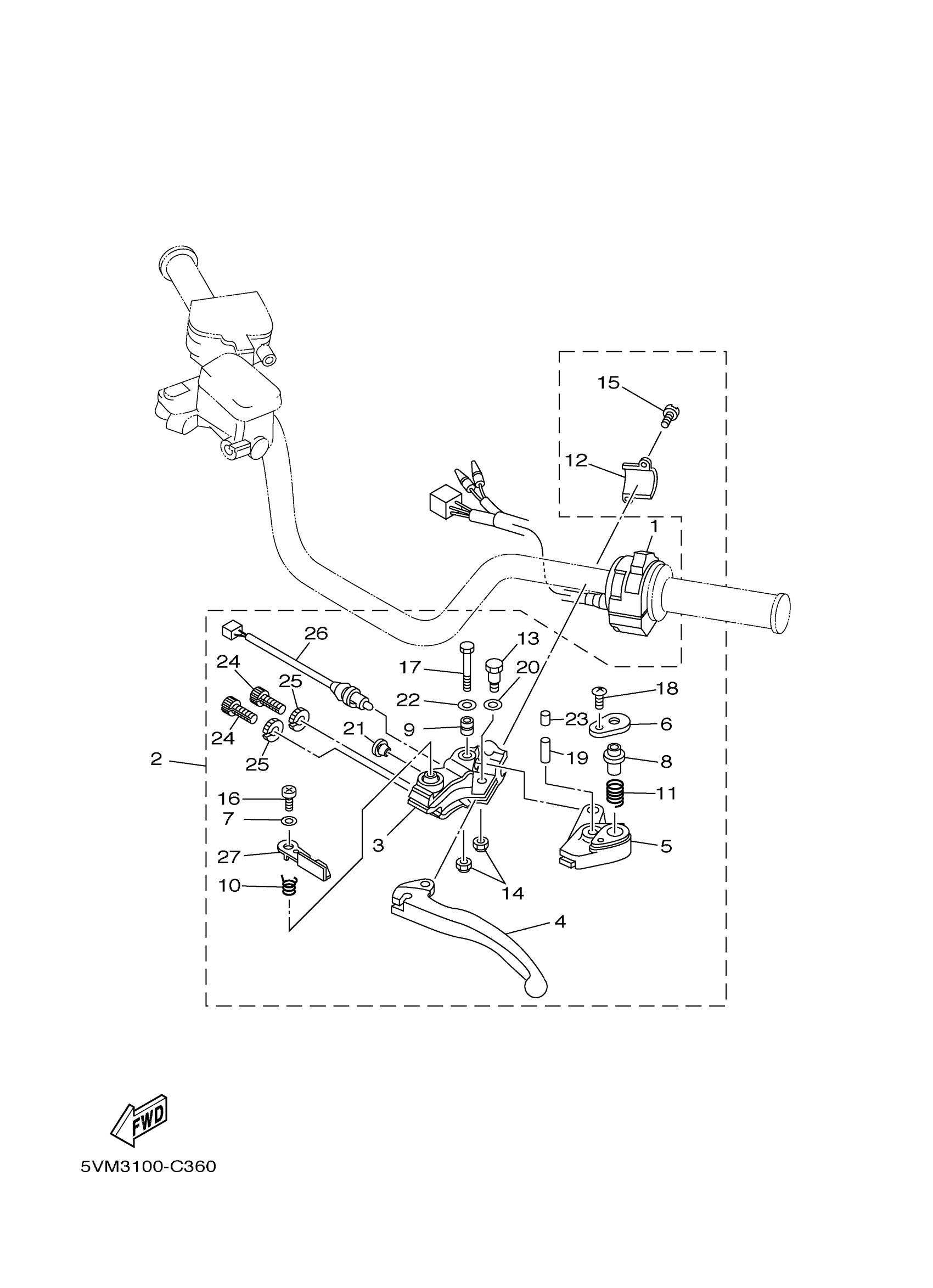 Yamaha YFS200SEV (BLASTER SE) 5VM9 2006 HANDLE SWITCH LEVER Diagram