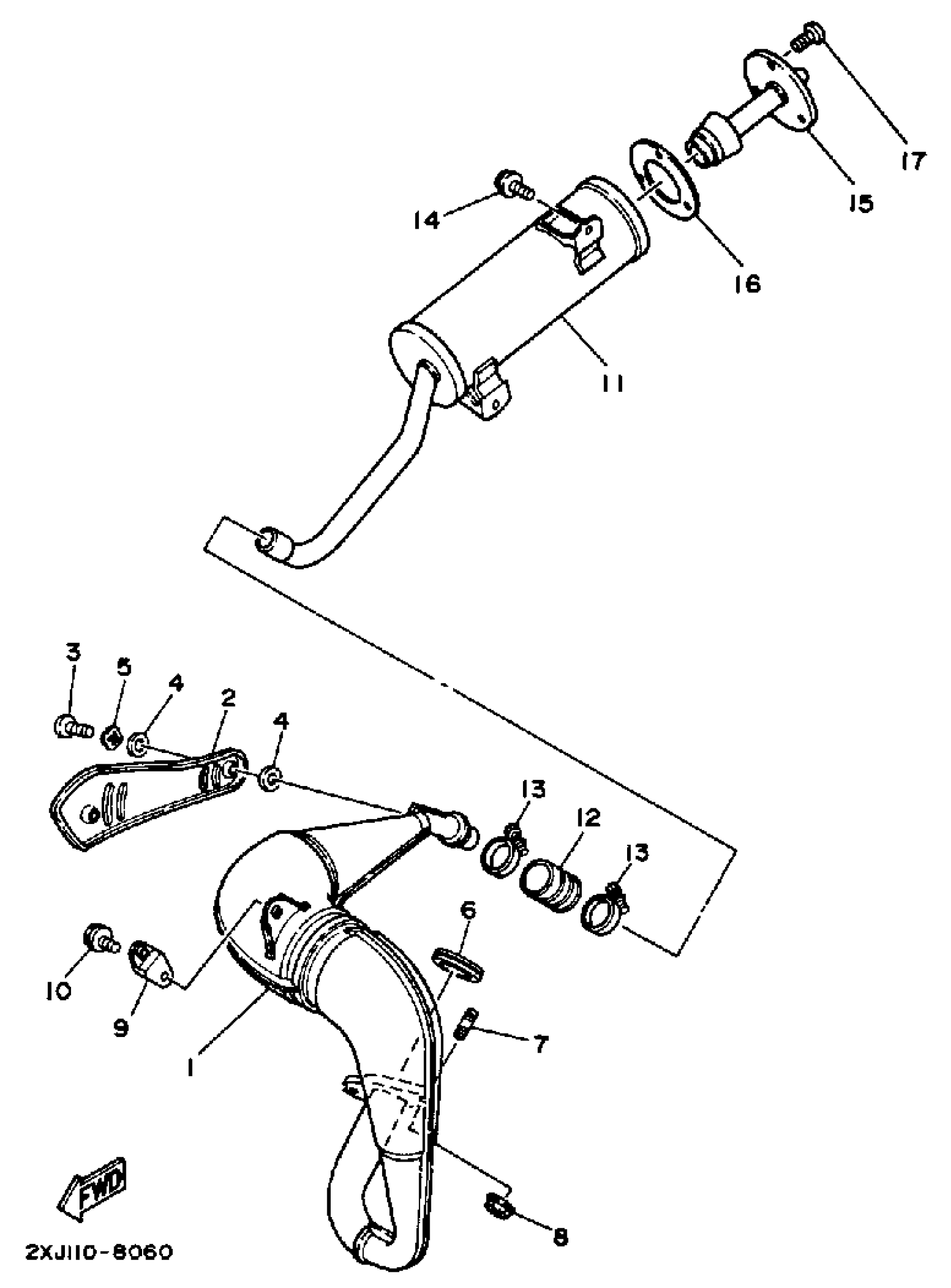 Yamaha YFS200U (BLASTER) 2XJ 1988 EXHAUST Diagram
