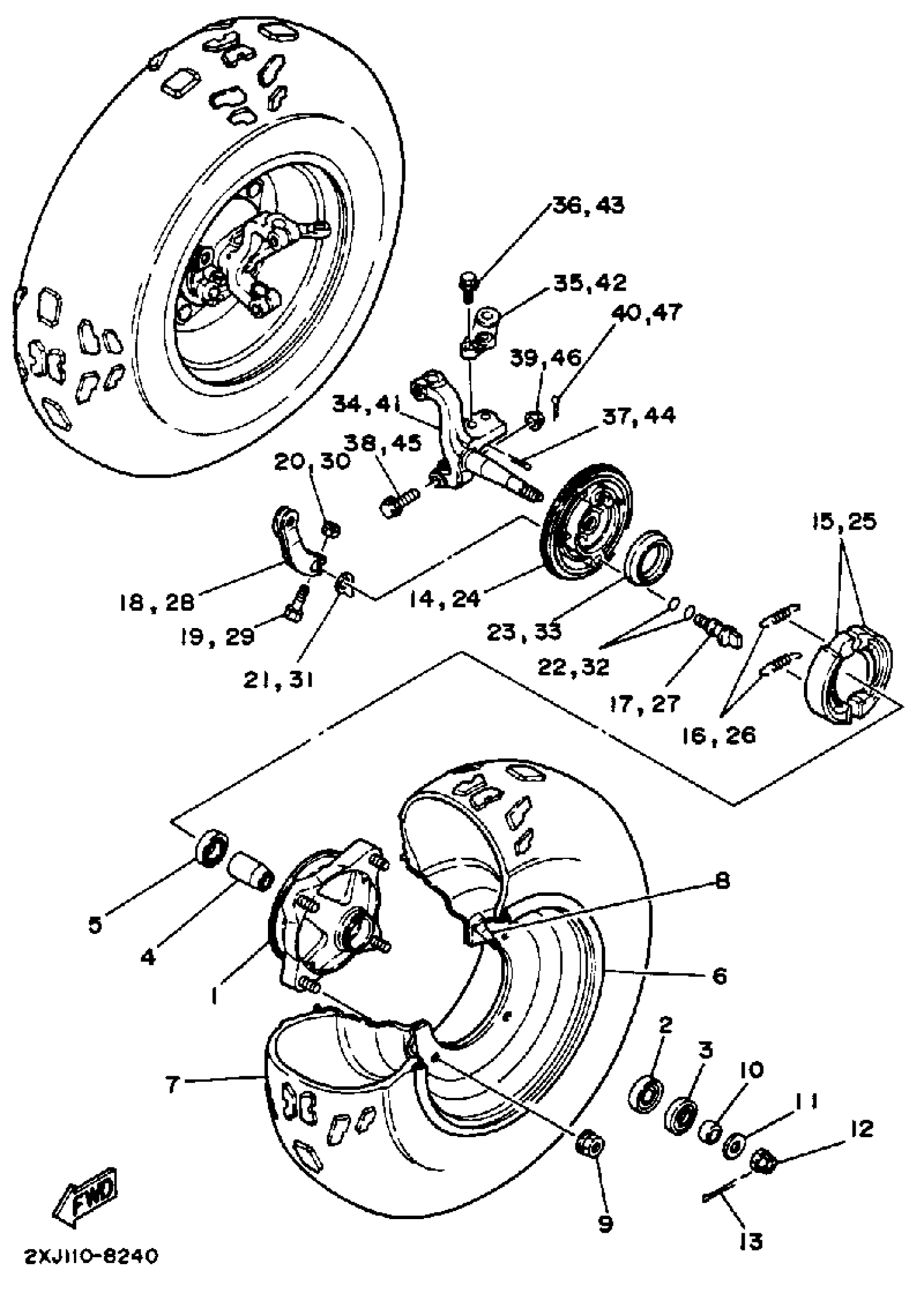 Yamaha YFS200U (BLASTER) 2XJ 1988 FRONT WHEEL Diagram