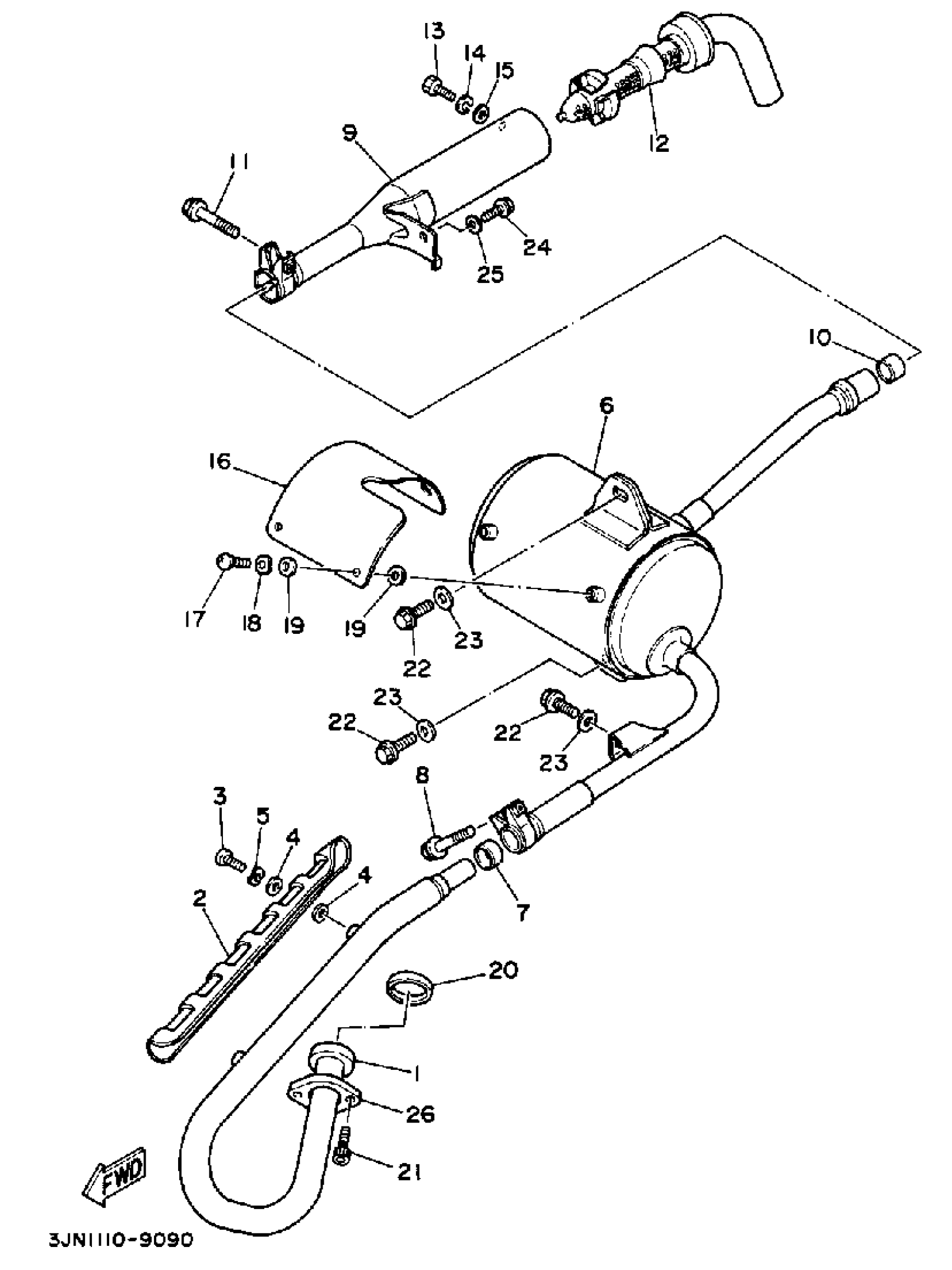 Yamaha YFU1TW (PRO-4 PRO HAULER W-TURF TIRES) 1989 EXHAUST Diagram