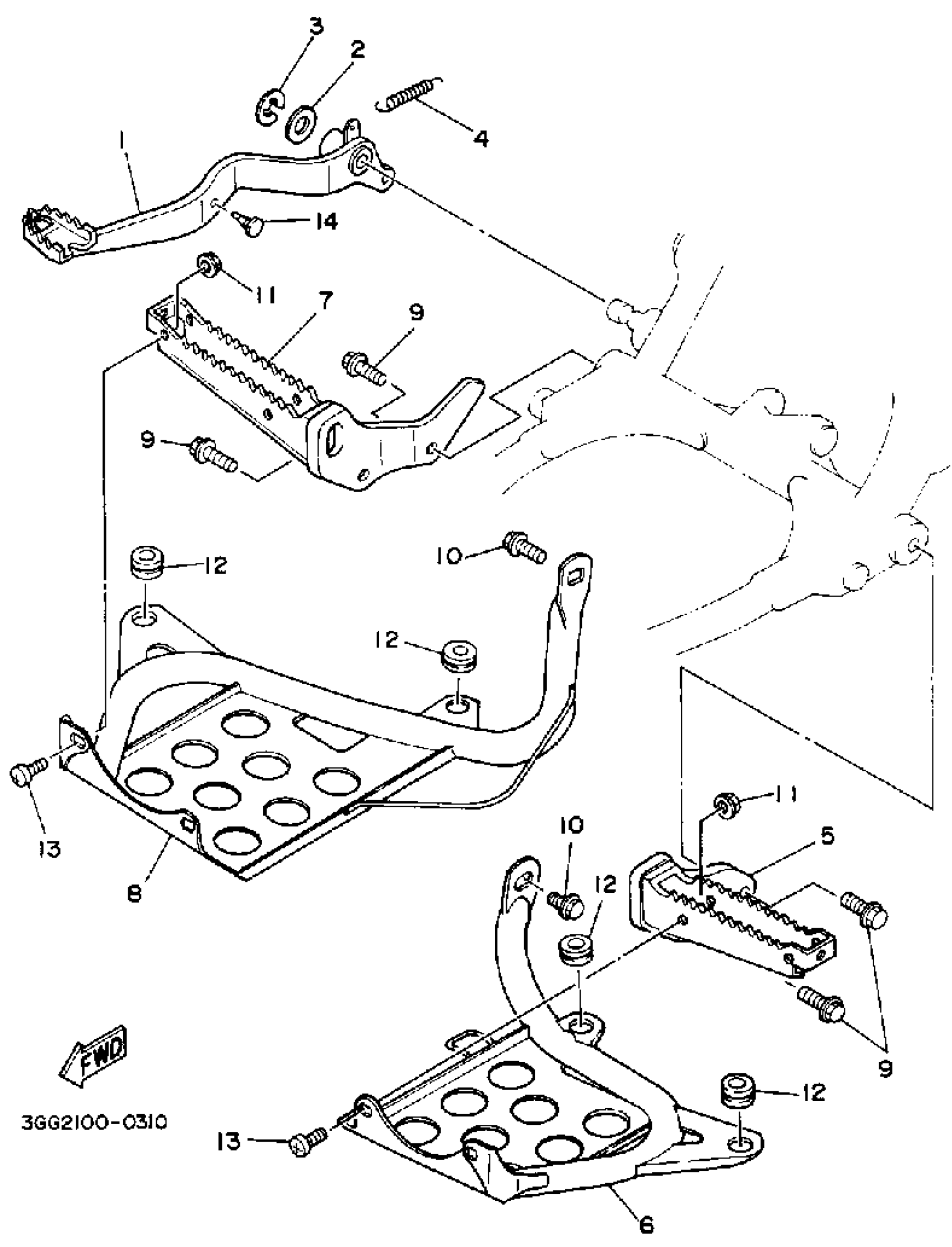 Yamaha YFZ350A (BANSHEE) 1990 STAND - FOOTREST Diagram