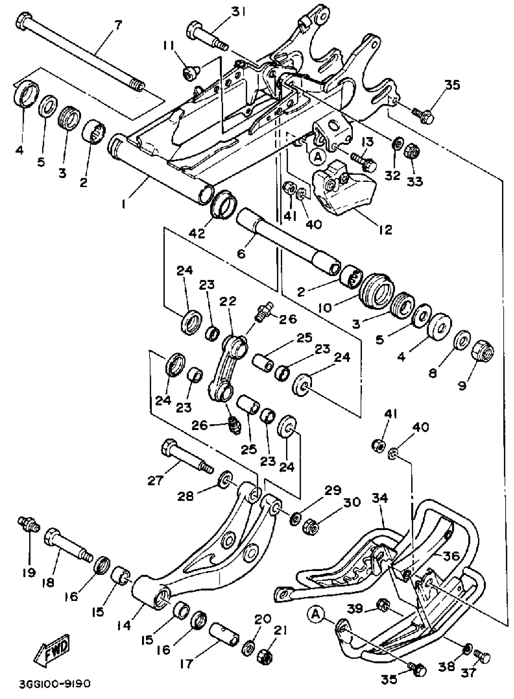 Yamaha YFZ350A (BANSHEE) 1990 SWING ARM Diagram