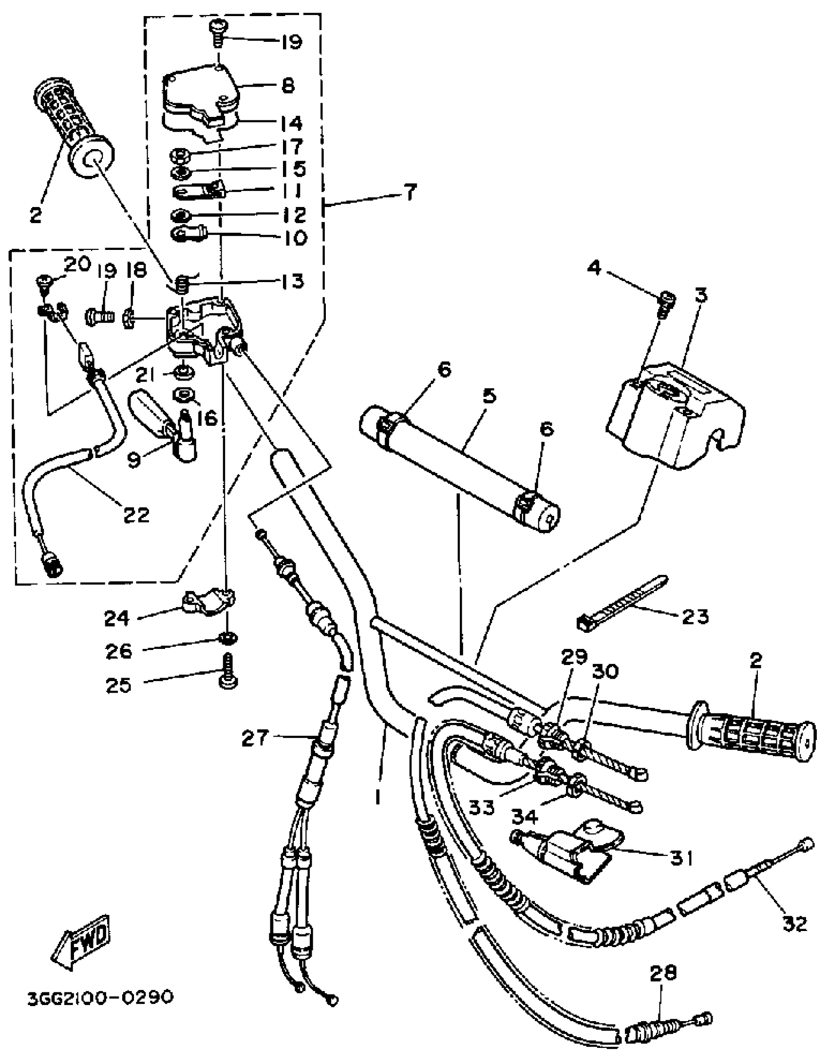 Yamaha YFZ350B_MNH (BANSHEE) 1991 HANDLEBAR-CABLE Diagram