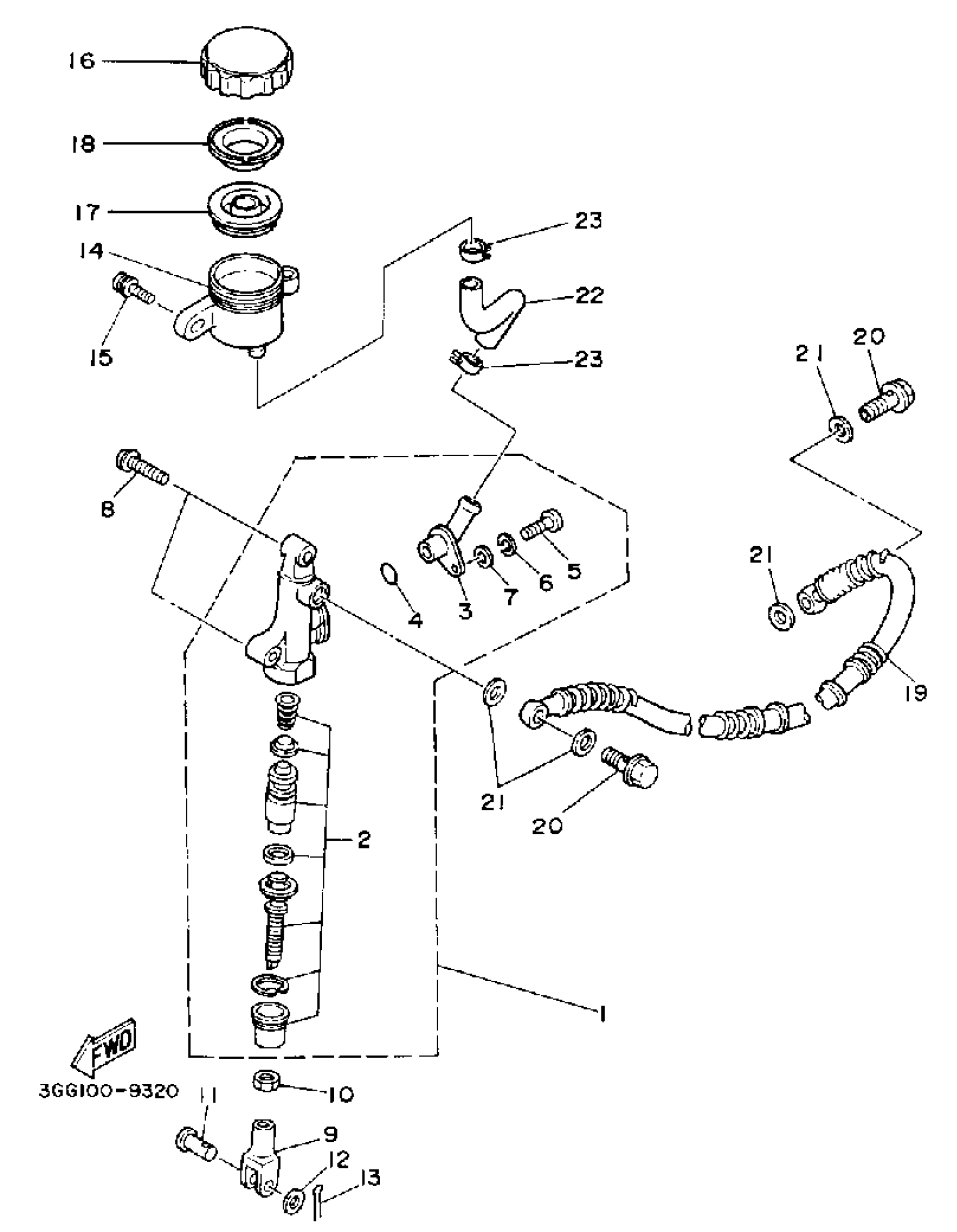 Yamaha YFZ350D (BANSHEE) 1992 REAR MASTER CYLINDER Diagram