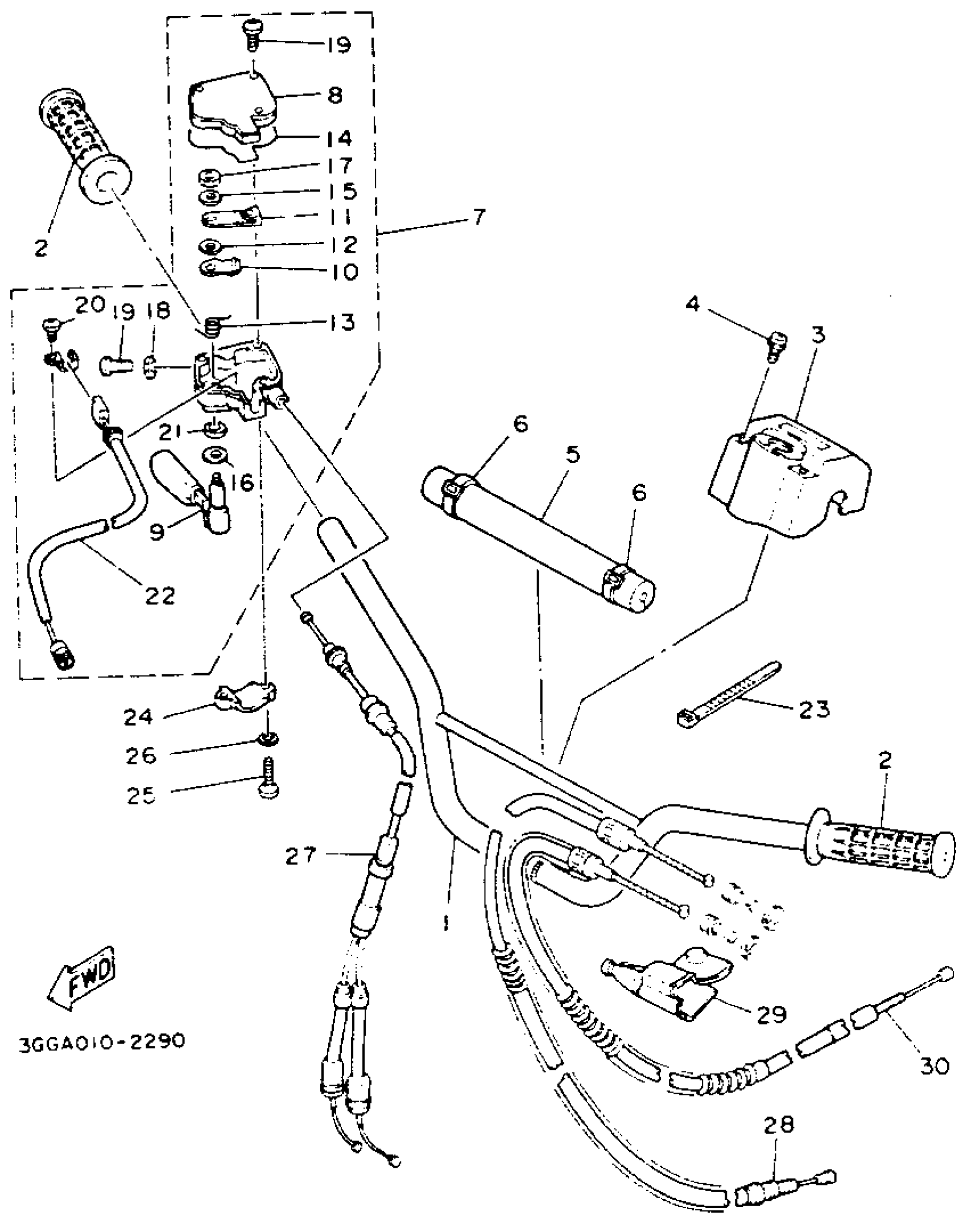 Yamaha YFZ350E (BANSHEE) 1993 HANDLEBAR - CABLE Diagram