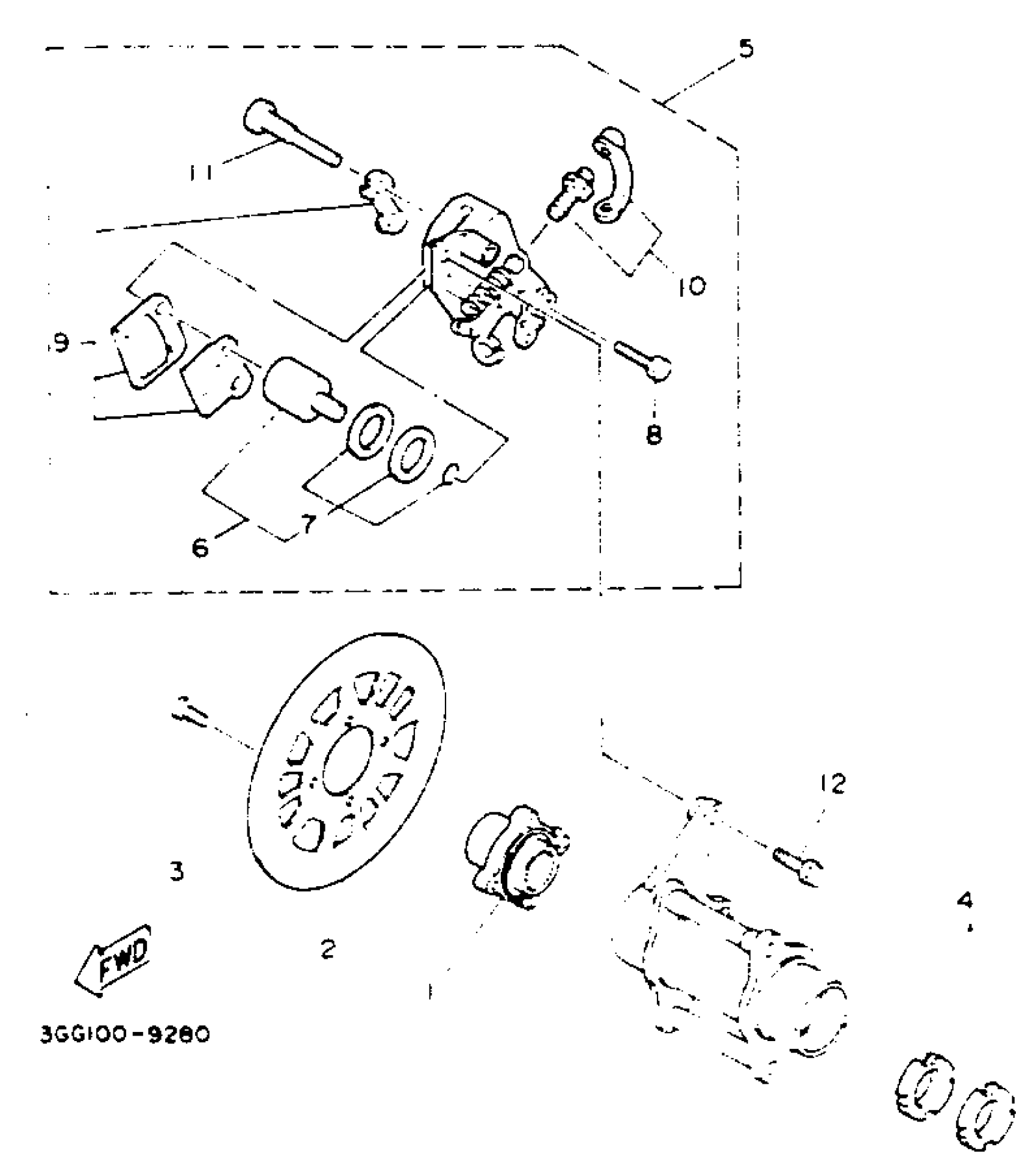 Yamaha YFZ350E (BANSHEE) 1993 REAR BRAKE CALIPER Diagram