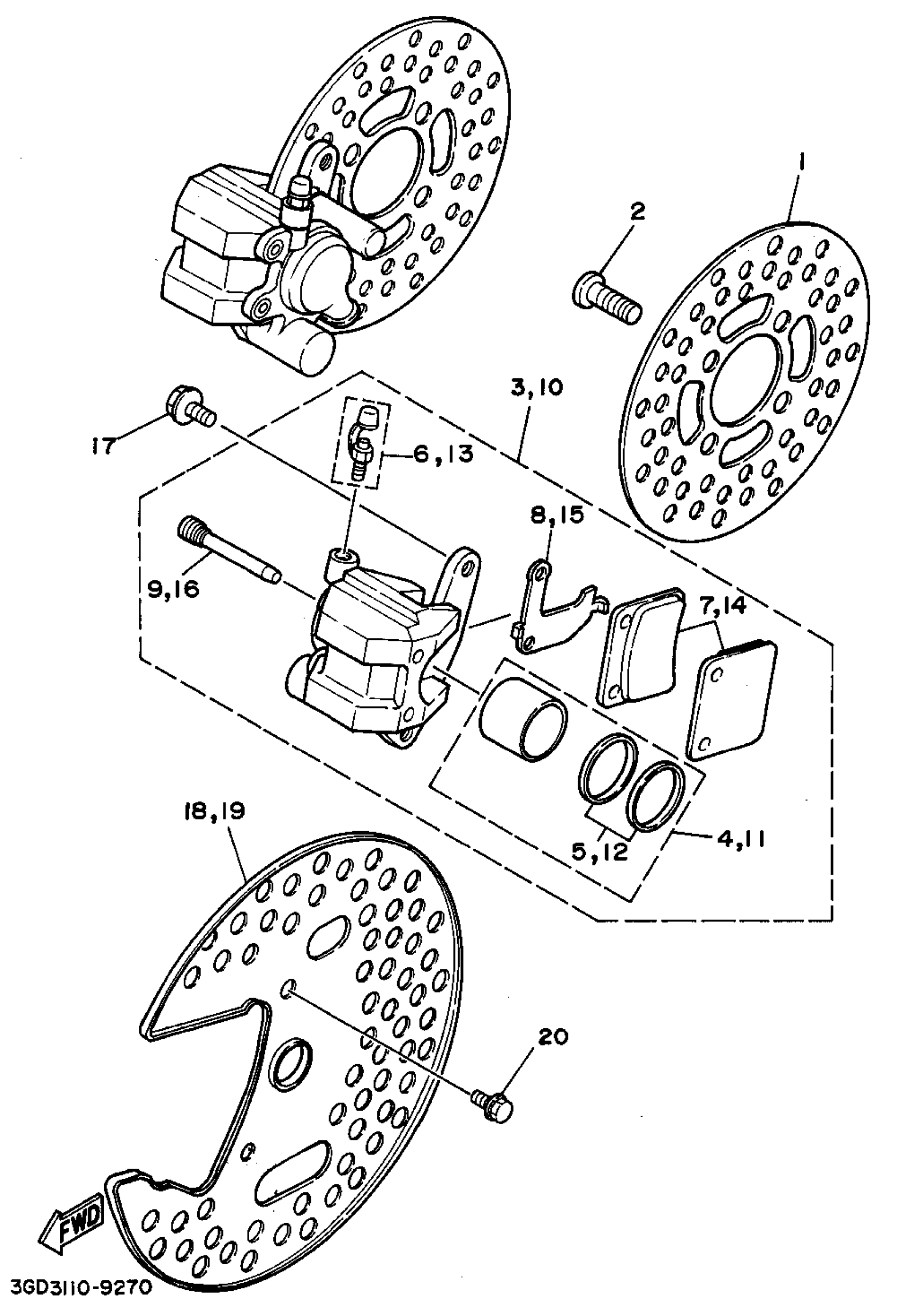 Yamaha YFZ350G (BANSHEE) 1995 FRONT BRAKE CALIPER Diagram