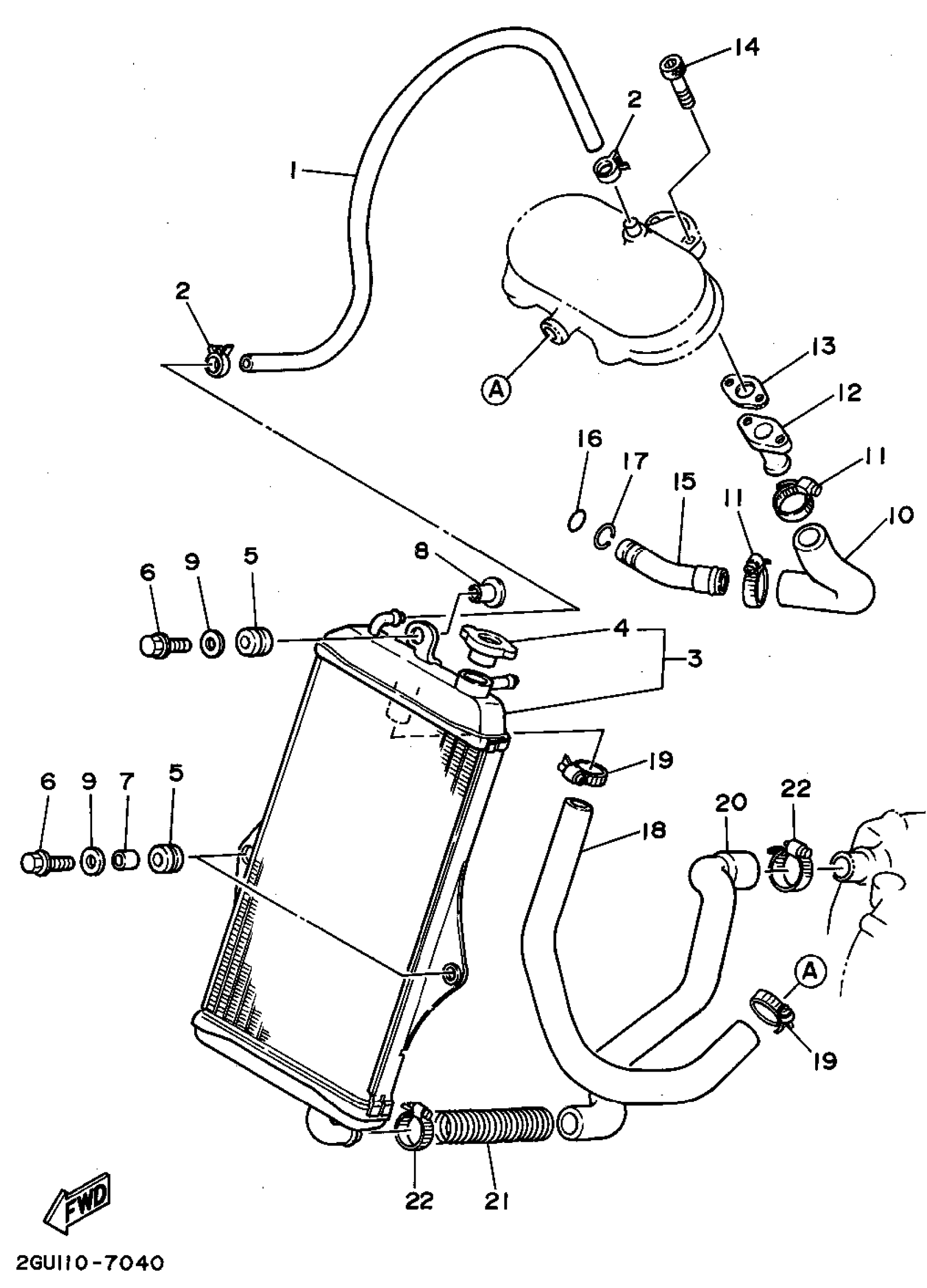 Yamaha YFZ350G (BANSHEE) 1995 RADIATOR - HOSE Diagram