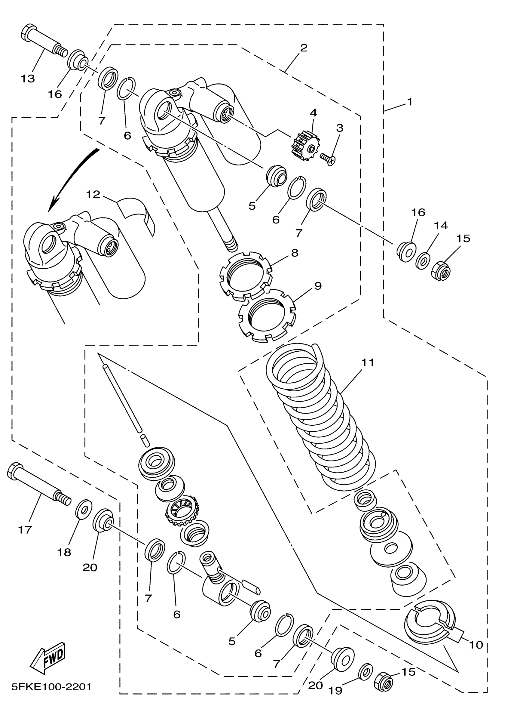 Yamaha YFZ350G_MNH (BANSHEE) 3GGH 1995 REAR SHOCK Diagram