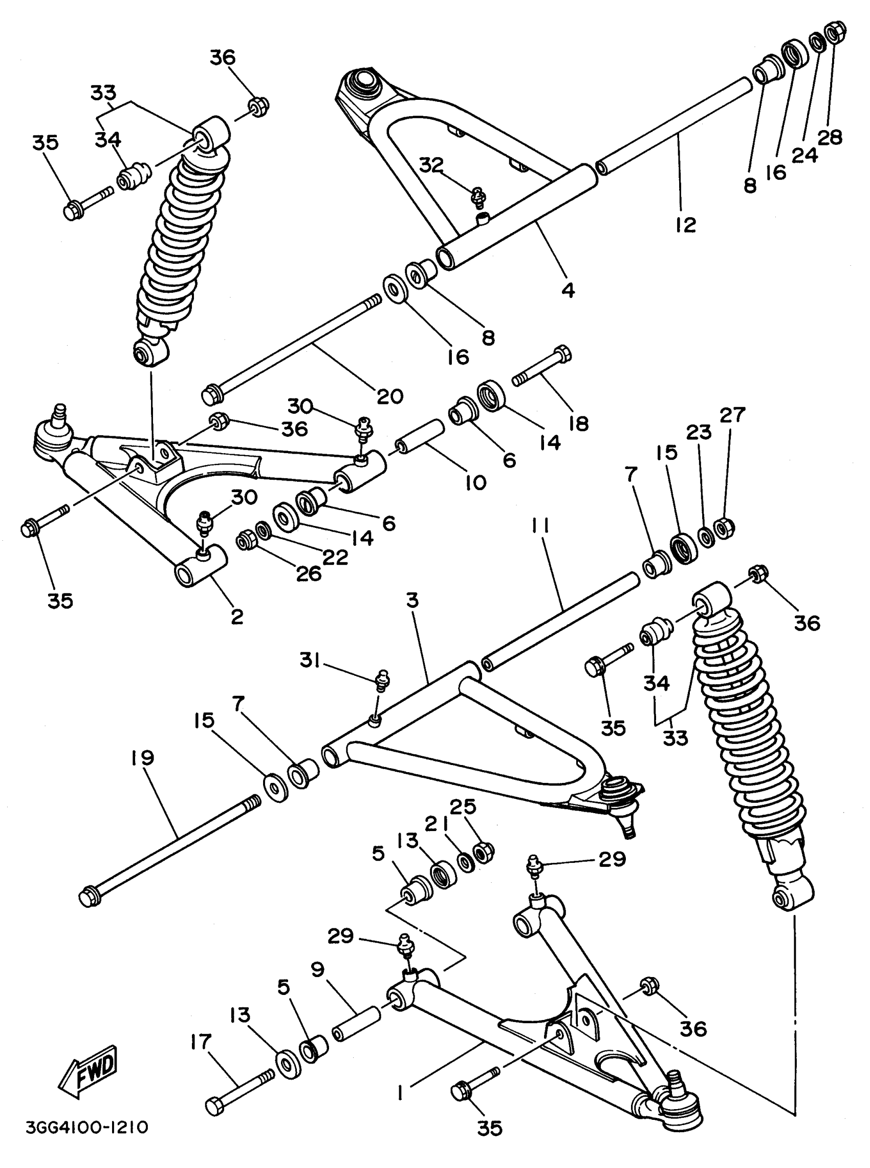 Yamaha YFZ350H (BANSHEE) 1996 FRONT SUSPENSION - WHEEL Diagram