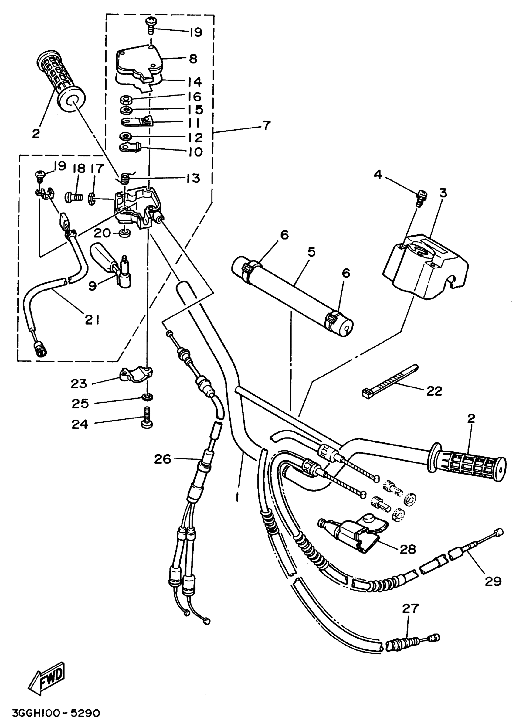 Yamaha YFZ350H (BANSHEE) 1996 STEERING HANDLE - CABLE Diagram
