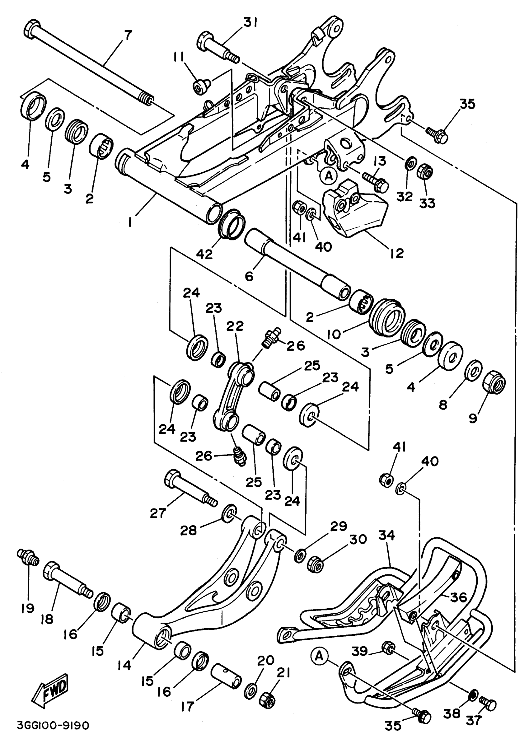 Yamaha YFZ350H_MNH (BANSHEE) 1996 REAR ARM Diagram