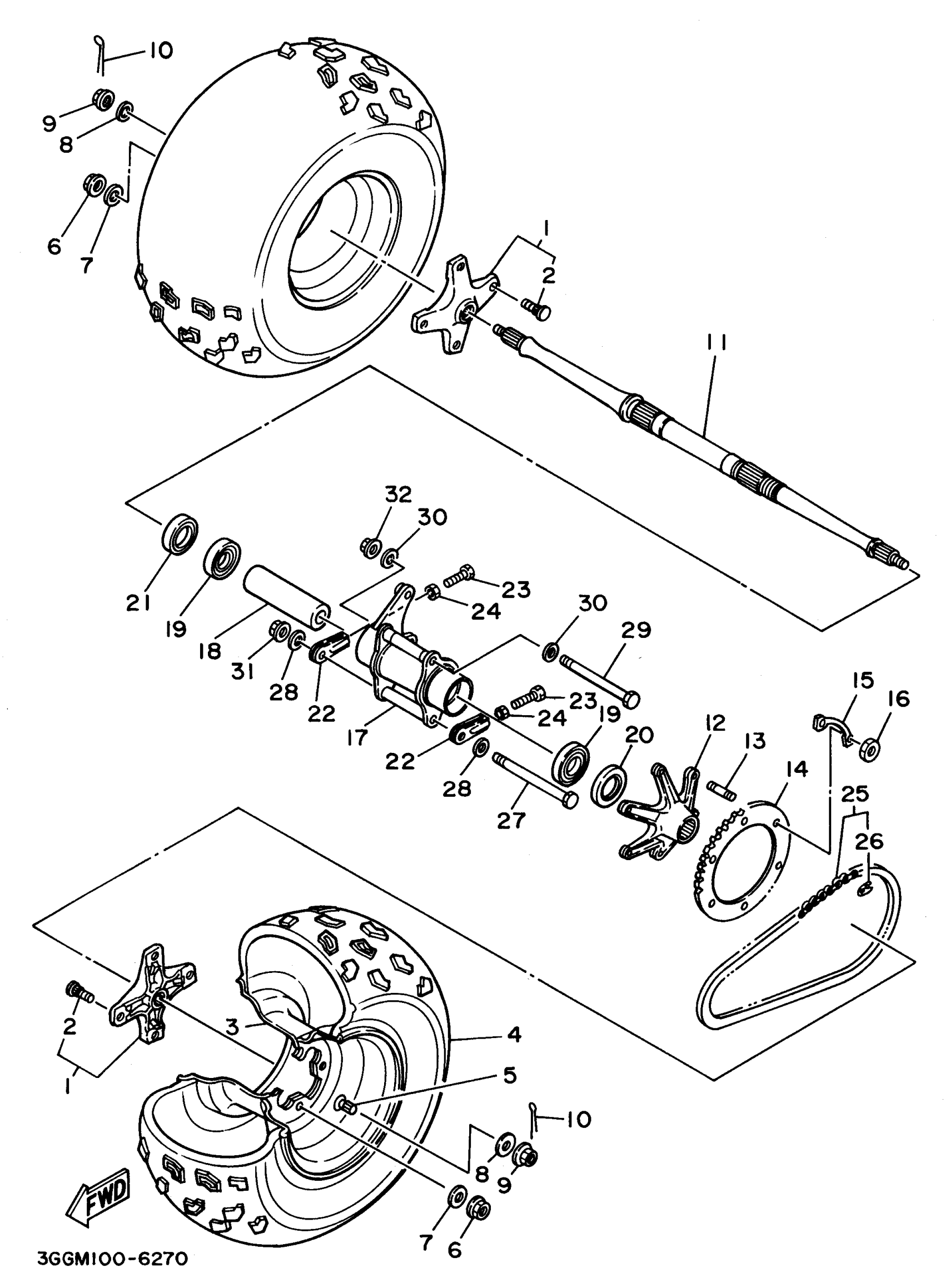 Yamaha YFZ350H_MNH (BANSHEE) 1996 REAR WHEEL Diagram