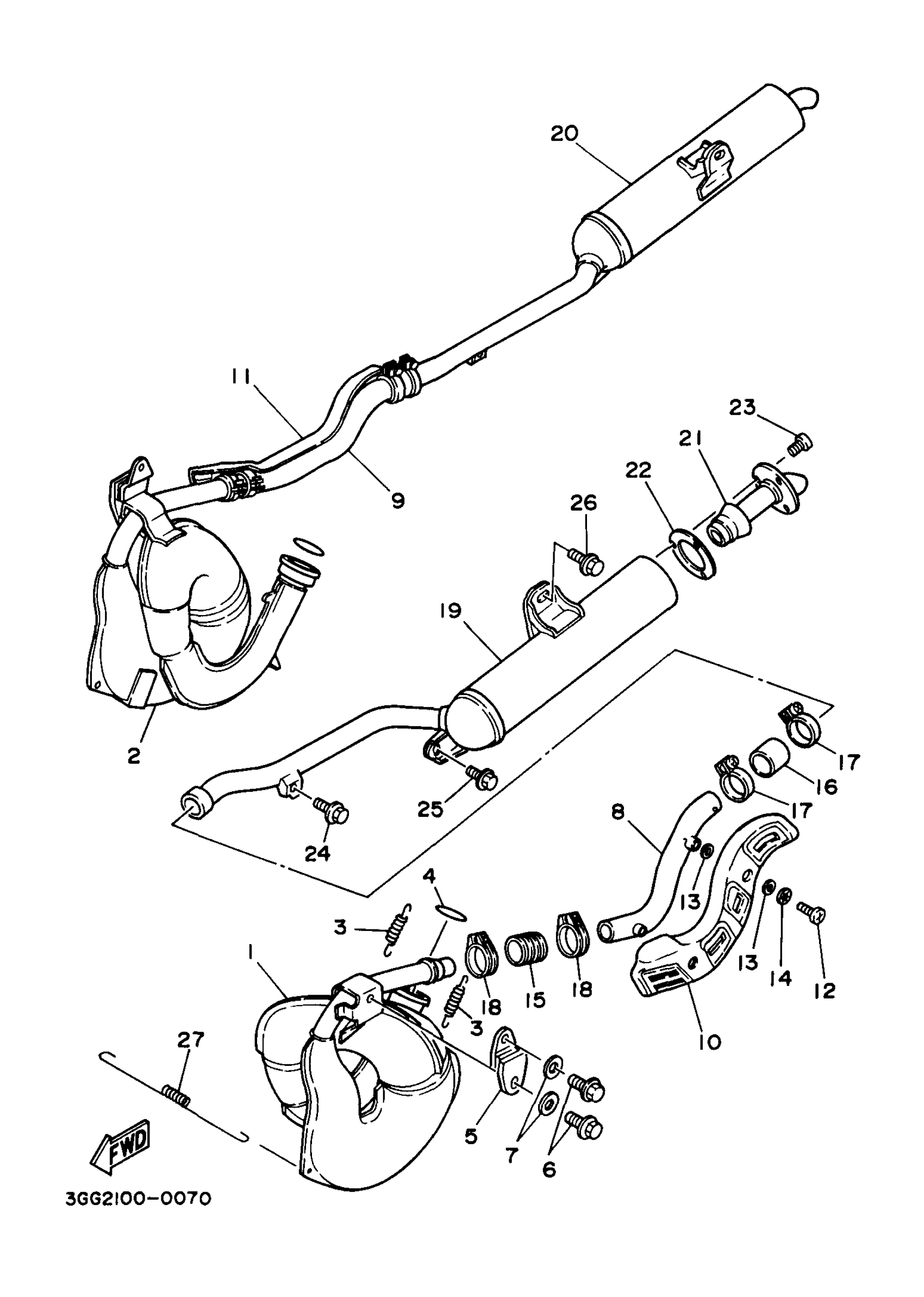 Yamaha YFZ350J_MNH (BANSHEE) 3GGS 1997 EXHAUST Diagram
