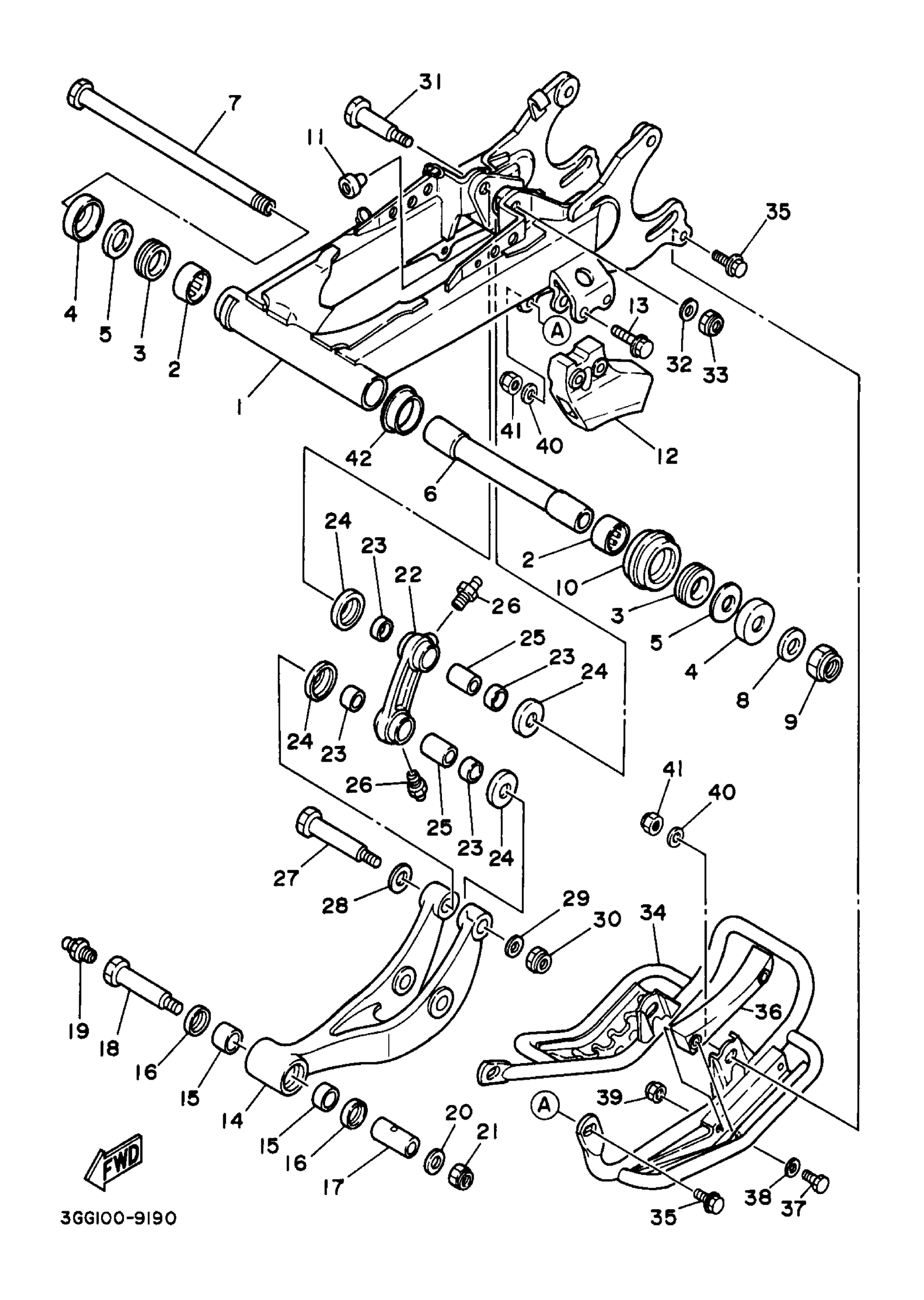 Yamaha YFZ350J_MNH (BANSHEE) 3GGS 1997 REAR ARM Diagram