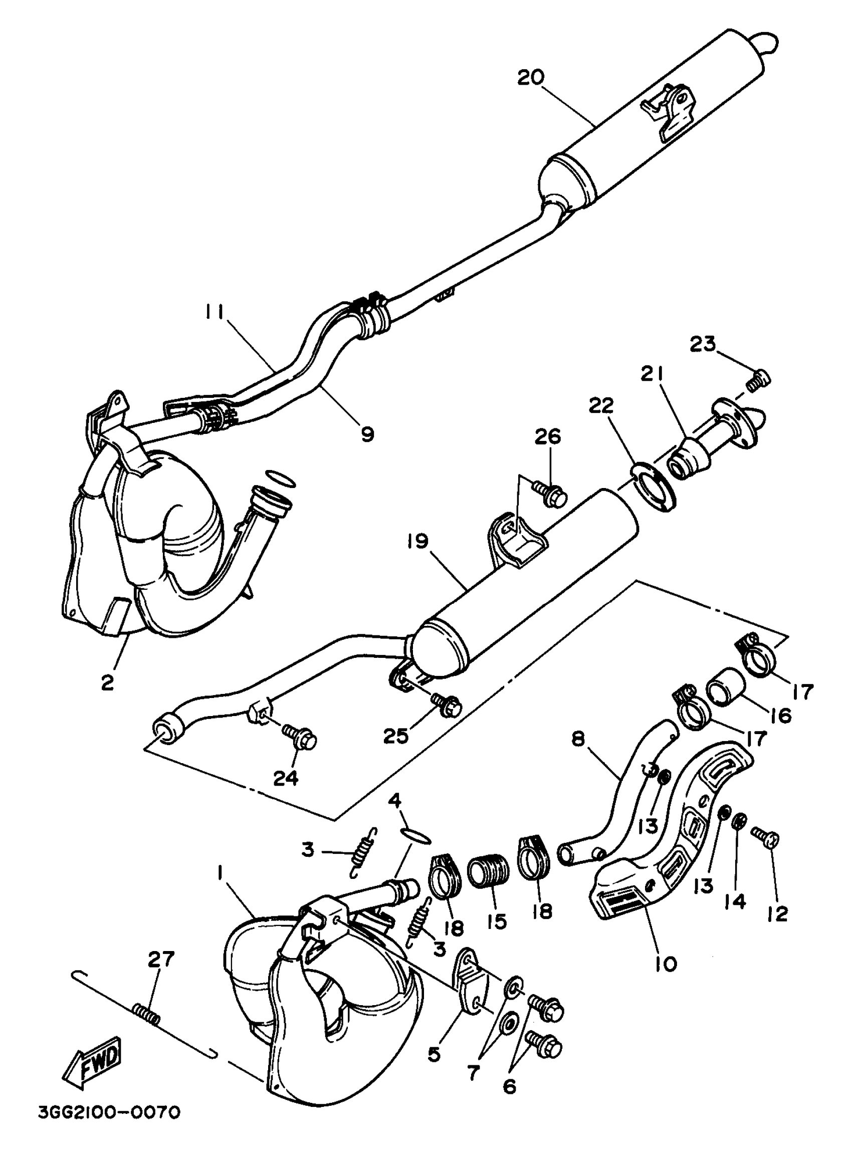 Yamaha YFZ350K (BANSHEE) 3GGW 1998 EXHAUST Diagram