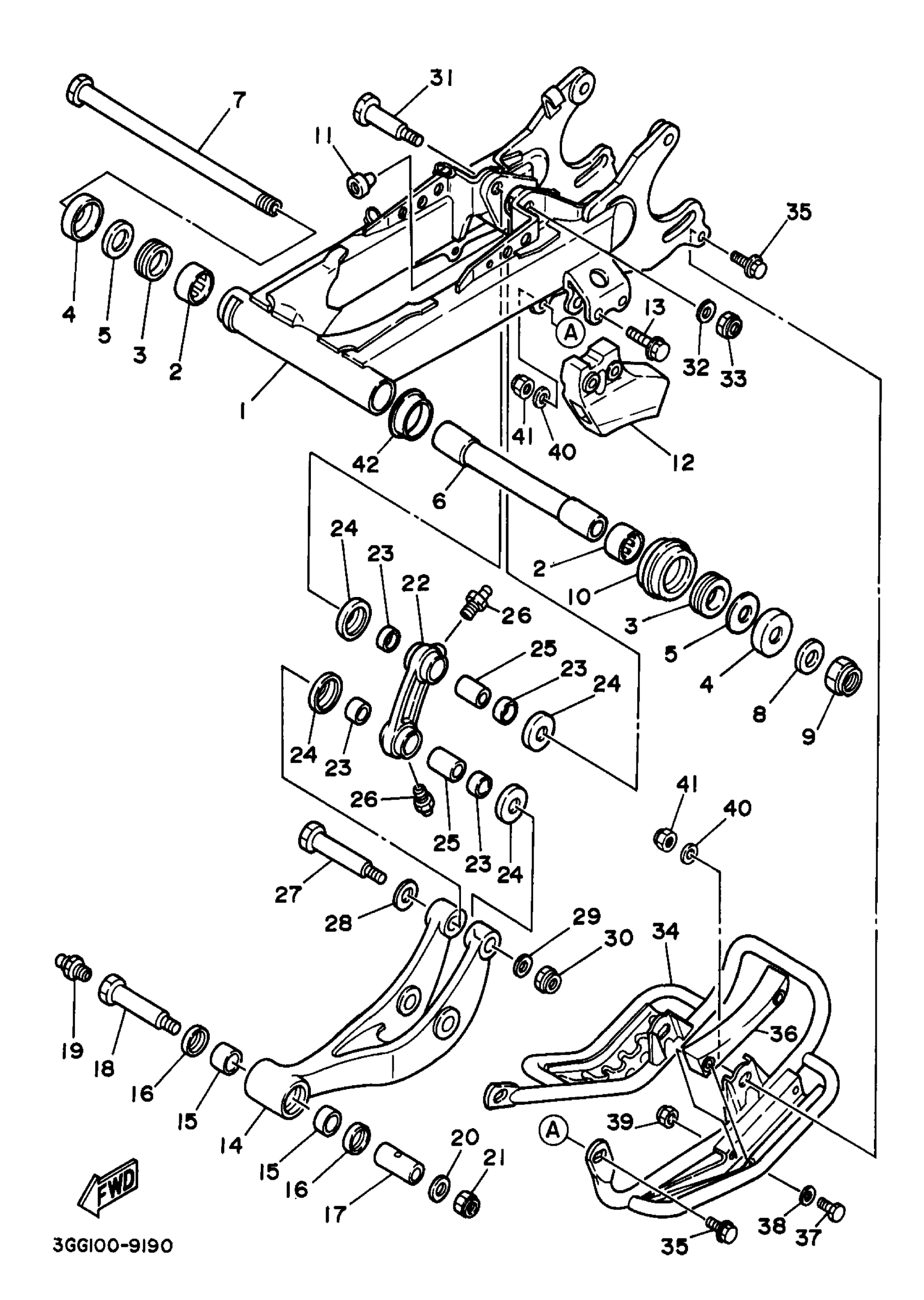 Yamaha YFZ350K (BANSHEE) 3GGW 1998 REAR ARM Diagram