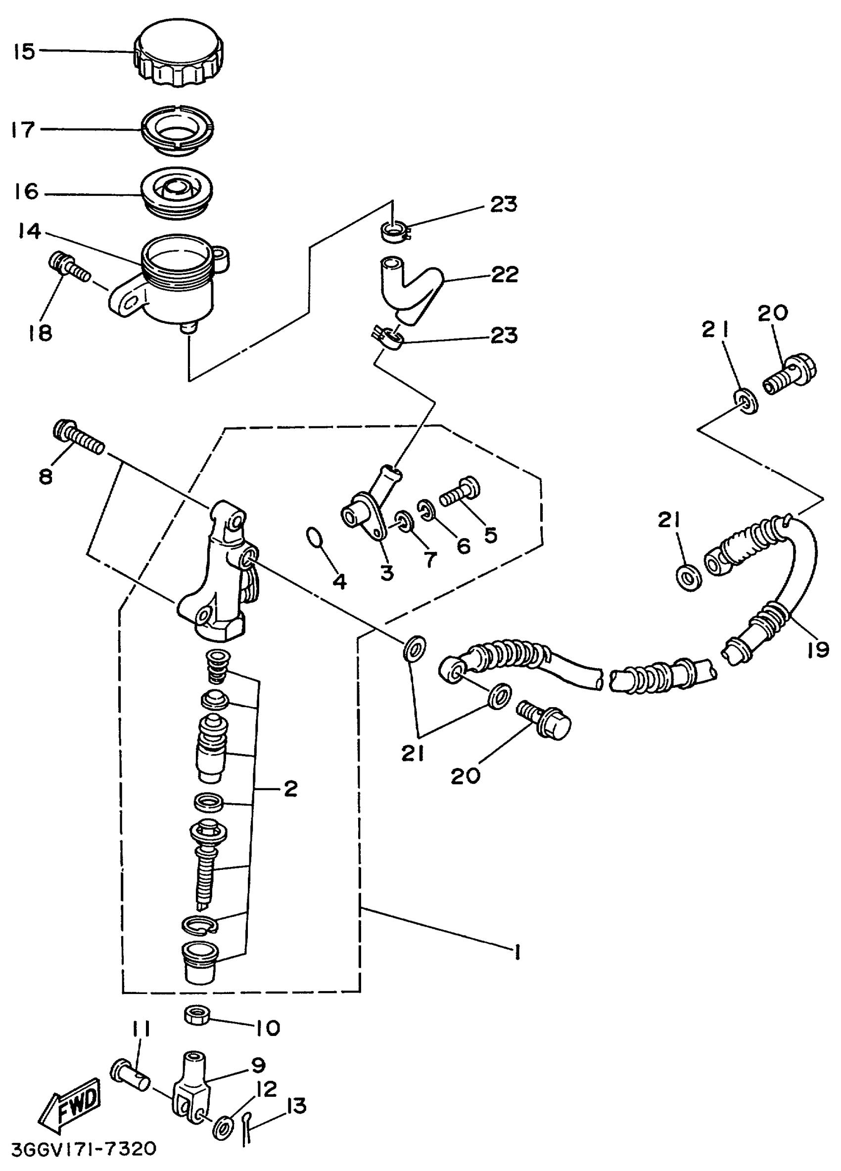 Yamaha YFZ350L (BANSHEE) 5FK2 1999 REAR MASTER CYLINDER Diagram