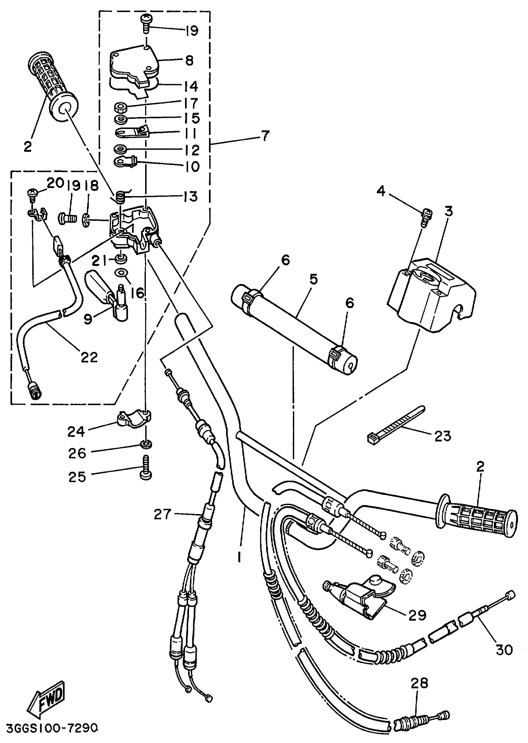 Yamaha YFZ350L (BANSHEE) 5FK2 1999 STEERING HANDLE - CABLE Diagram